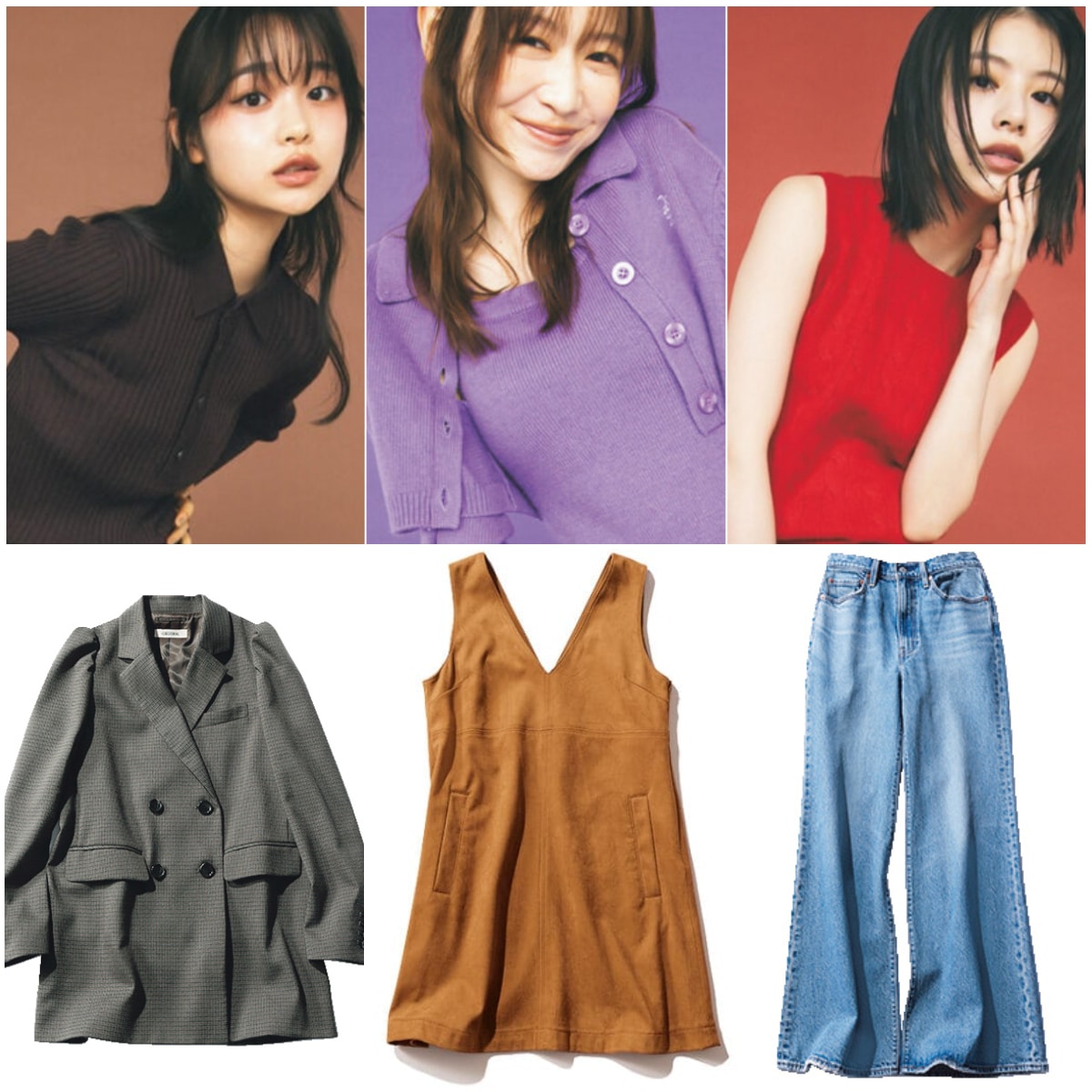 ジャケット¥13200/ROPÉ PICNIC ニット¥9990/プラステ インに着たカットソー¥6930/ワールド プレスインフォメーション(ギャレスト) パンツ¥3280・バッグ¥2990/神戸レタス イヤリング¥2090/お世話や(OSEWAYA) ブレスレット¥2750/ゴールディ スカーフ¥22000/マニプリ 靴¥16500/アシックスジャパン カスタマーサポート部