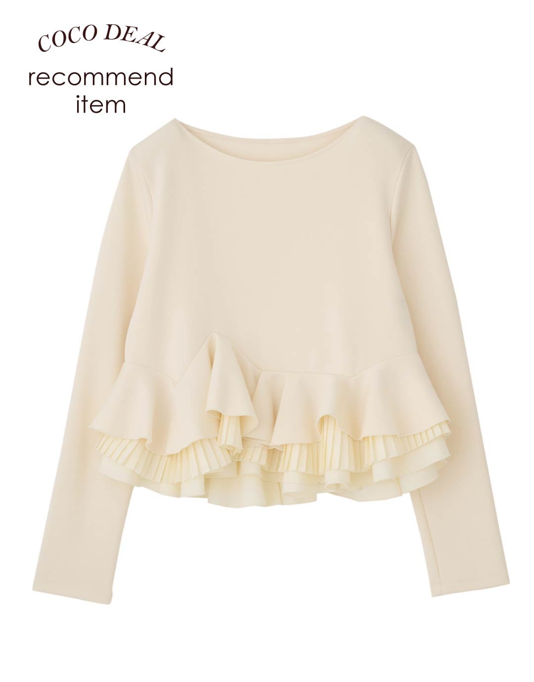 ココ ディール定番のペプラムトップスがアップデートして登場!今回はフリルが更に華やかに。一枚での着用はもちろん、ニットやカーディガンにインして裾からフリルをチラ見せするのもおすすめ! モチモチ素材で肌当たりのよさにもこだわっています。