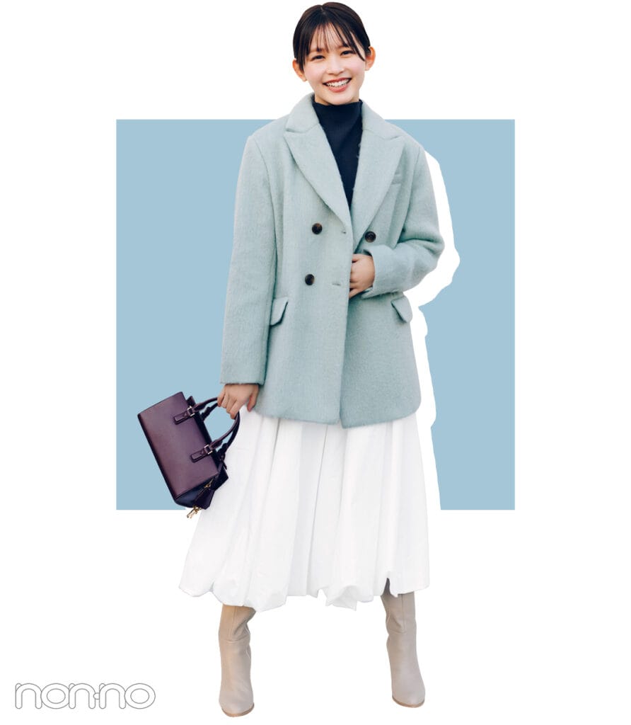 スカート/着回し コート¥38500/eimy istoire ルミネエスト新宿店 トップス¥9493/N.Natural Beauty Basic ルミネエスト新宿店(N.Natural Beauty Basic) バッグ¥12900/CHARLES & KEITH JAPAN(CHARLES & KEITH) 靴¥43450/ダイアナ 銀座本店(ダイアナ)