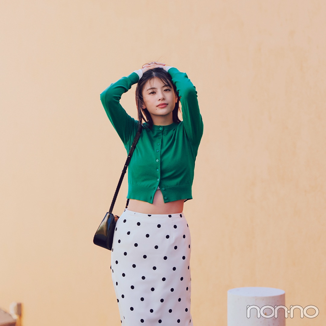 ちびカーデとミディ丈スカートでとびきりレディな気分【大学生の毎日コーデ】