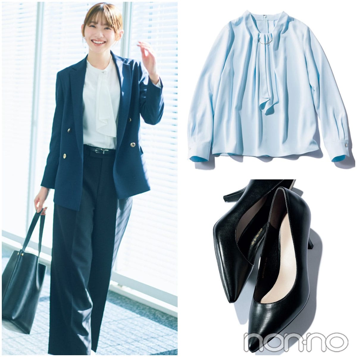 ニット¥4990/プラステ メガネ¥31000/アイヴァン PR(アイヴァン) イヤリング¥2203/サードオフィス(ROOM) 時計¥23000/オー・ビジュー(ロゼモン) バッグ¥5900/UNRELISH ベルト¥3800/ザ・スーツカンパニー 銀座本店(ザ・スーツカンパニー) 靴¥13000/ダイアナ 銀座本店(ダイアナ)