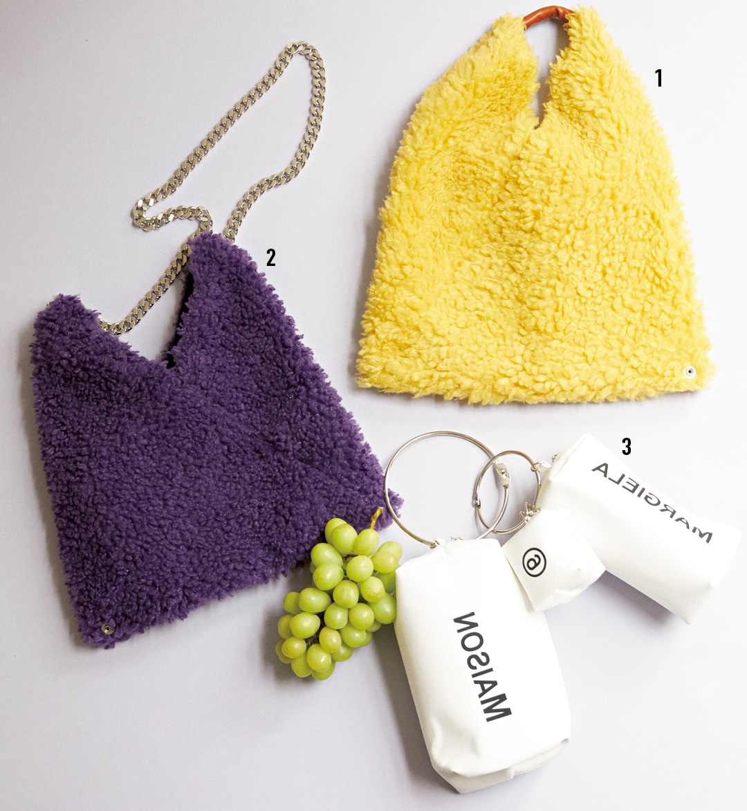 1・2 風呂敷にインスパイアされた三角形の名作バッグが、秋色もこもこ素材でお目見え。