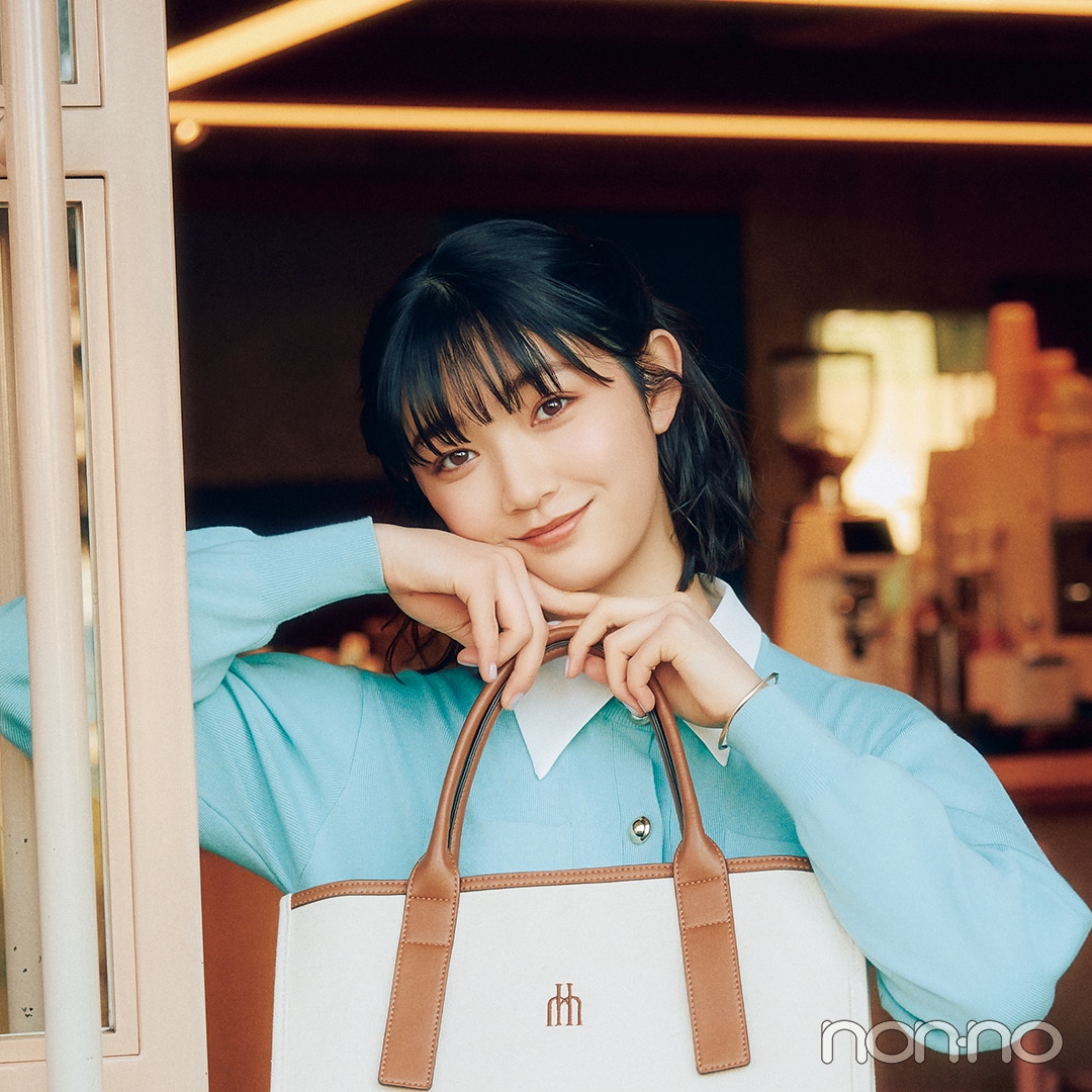 ニット/着回し シャツ¥21000/メゾン ド ベージュ パンツ¥19000/ルフトローブ カチューシャ¥1100/サンポークリエイト(アネモネ) イヤリング¥2164/サードオフィス(ROOM) 時計¥16000/エイチエムエスウォッチストア オモテサンドウ(マム) バッグ¥23000/フォーティーン ショールーム(ハブファン) 靴¥11500/ダイアナ 銀座本店