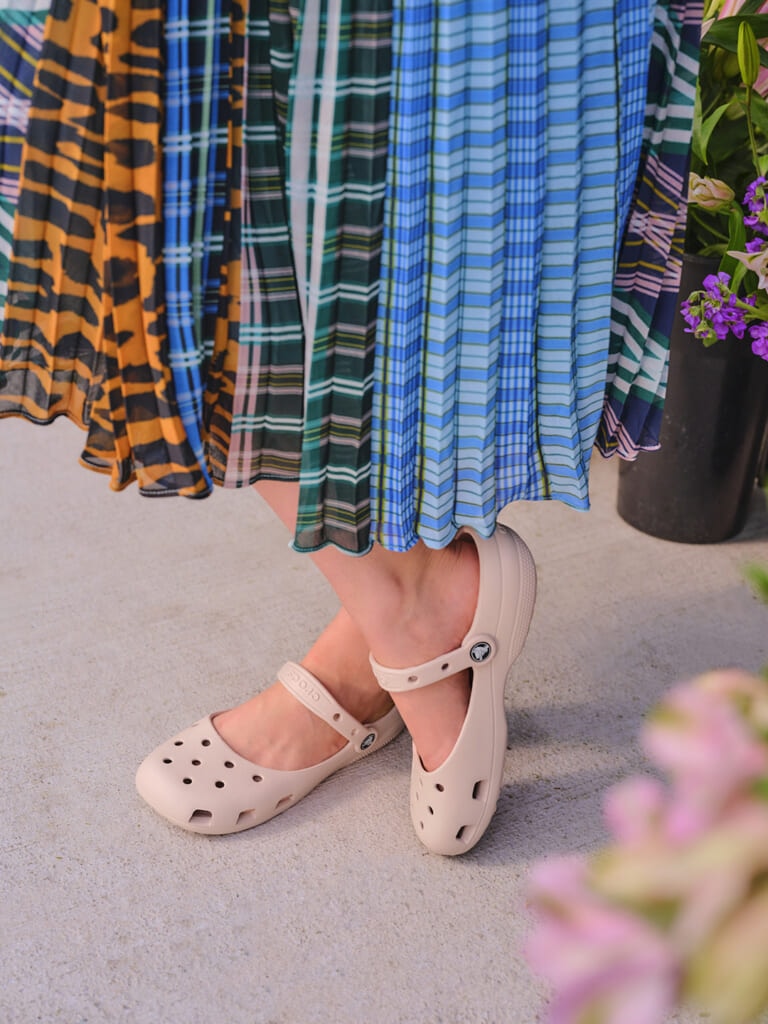 軽くて長時間履いても疲れにくい「クロックス(CROCS)」。最近は、厚底タイプで足元の主張高めのY2Kスタイルにしたり、自分好みのチャームをつけたりしておしゃれを楽しむ人が増加中! 今回は、甘めファッションが好きな人におすすめしたいバレエシューズのようなフォルムの「クラシック バレエ」をご紹介!