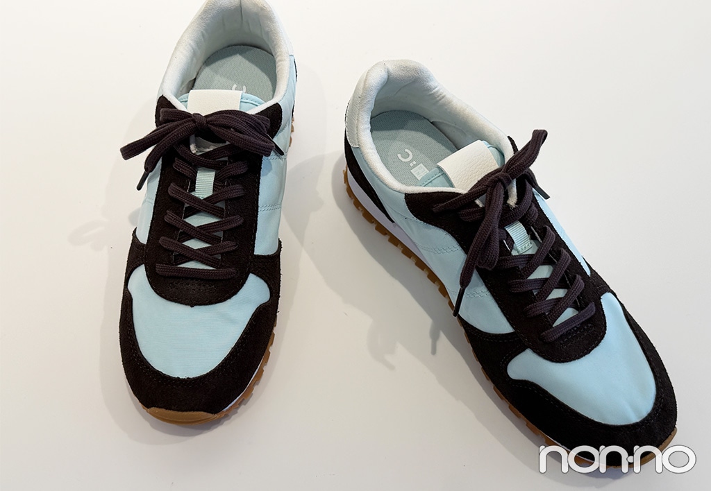 クレア・ワイト・ケラーがデザイナーをつとめるユニクロの人気コレクション「ユニクロ・シー(UNIQLO : C)」に2026年春夏・最新作が登場! ノンノウェブが展示会を訪れた際、「色合わせがおしゃれすぎる……!」と目をひいたのが“チョコミント”配色のスニーカー。爽やかなミントブルーにダークなブラウンを合わせ、大人っぽい色のバランスに仕上げた一足をチェック!