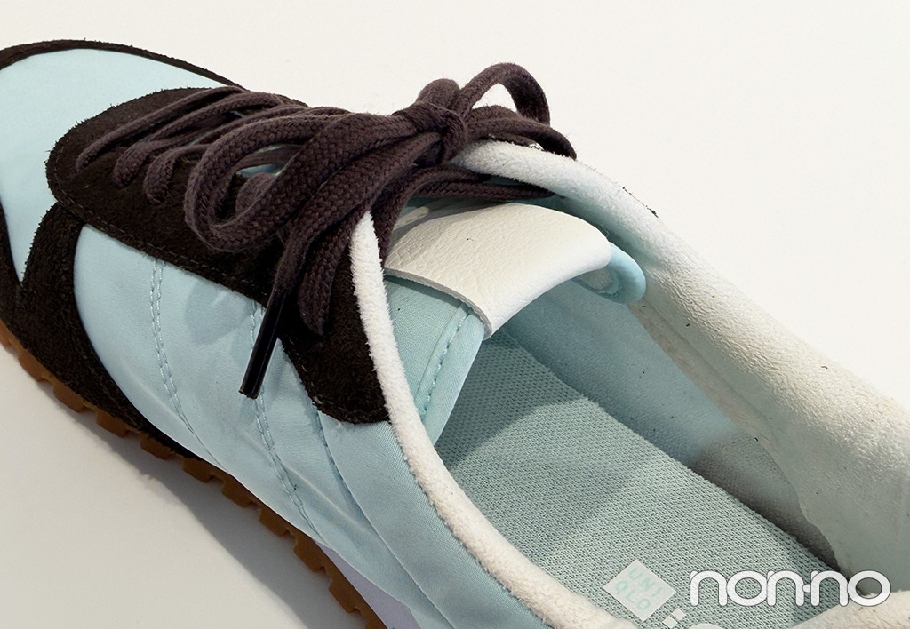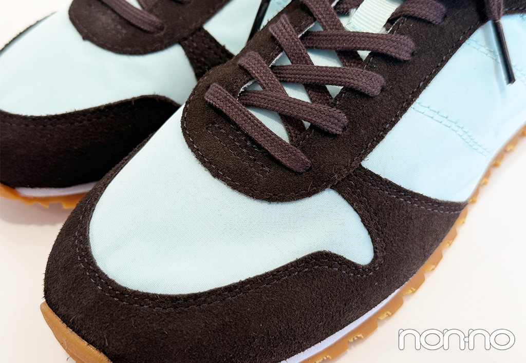 ブラウンの部分はスウェード生地で上品な印象。レトロなムード漂うソールが今の気分にマッチ。