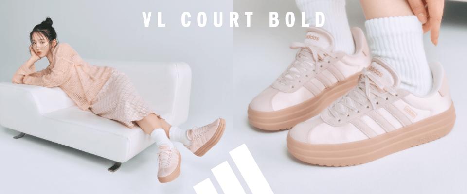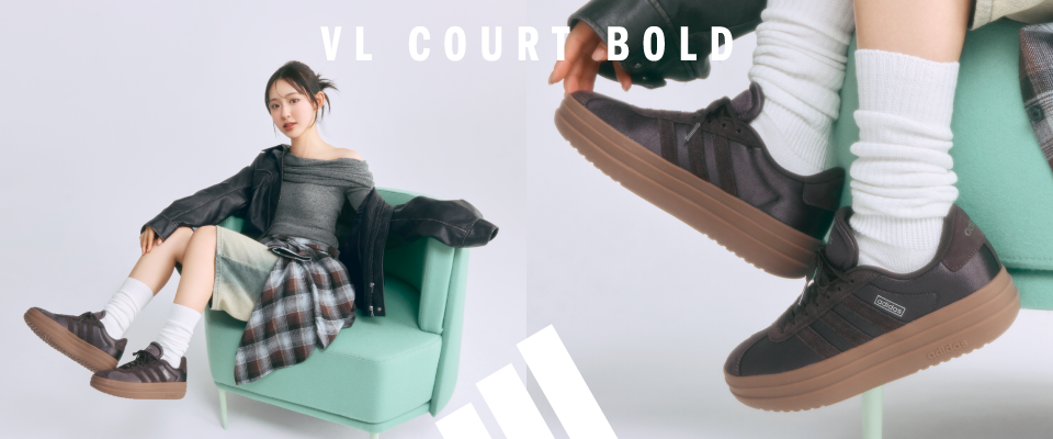ボリューム感のある厚底モデル「VL COURT BOLD」はピンクとブラウンのカラーで登場。ピンクは大人スウィートな着こなしに、ブラウンは韓国ギャル風コーデとも最高にマッチ。