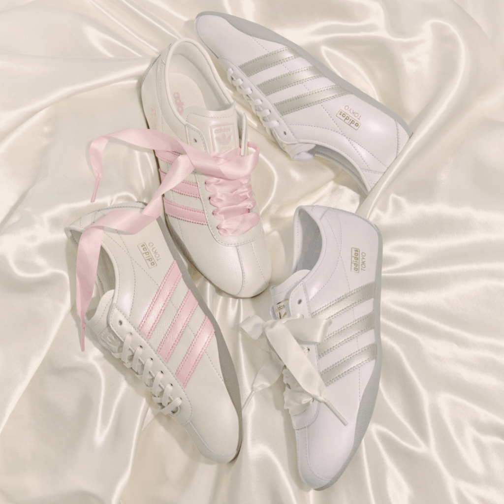 ABC-MART限定カラーの「TOKYO」は、細身で薄底のロープロファイルシルエットに、オフホワイトとグレーをベースにしたパール感のあるニュアンスカラー2色を展開。また、通常のシューレースとサテン素材のリボンシューレースを備えた2WAY仕様で、シューレースを替えるだけで足元の印象をカジュアルにもフェミニンにも切り替えられる一足。
