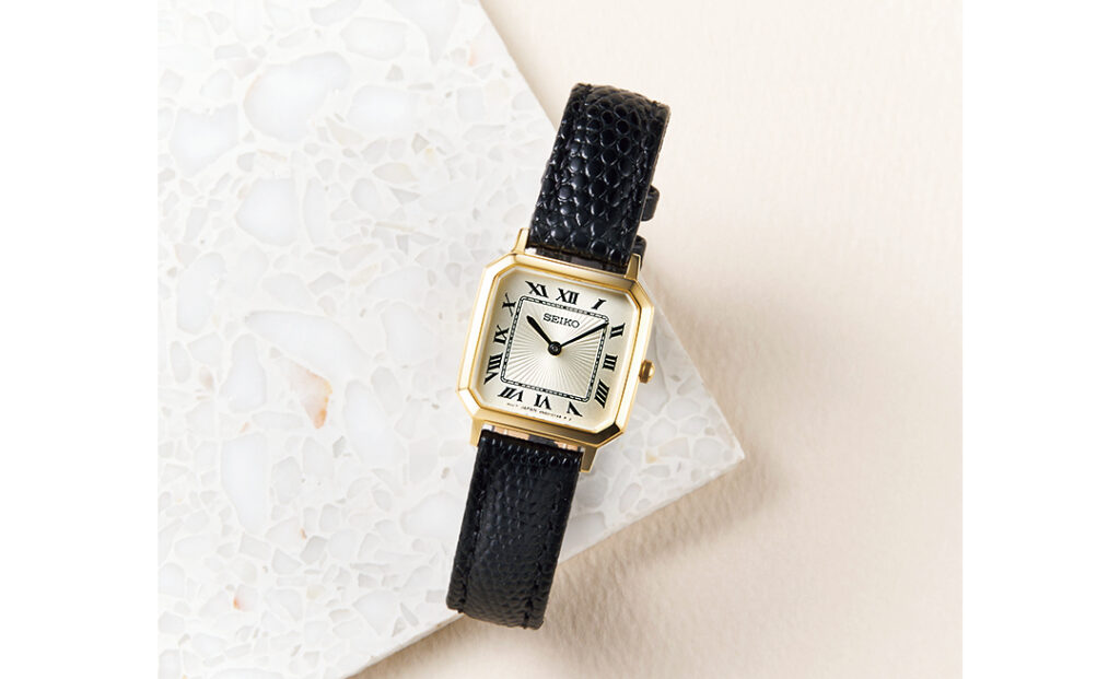 1970年代後半のアーカイブから着想した八角形のケース。型押しベルトで上質な大人の品格をまとって♡