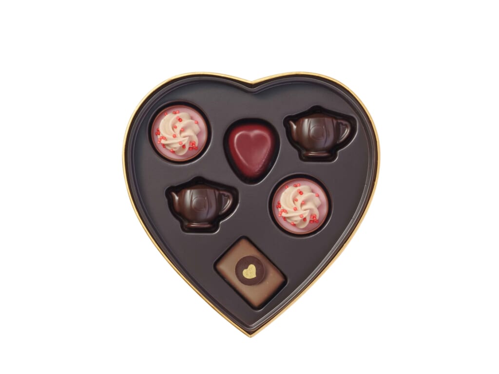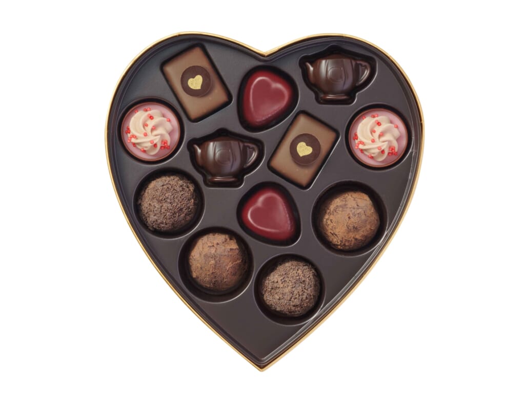 100周年を記念してリニューアルされたゴディバのシンボル「クール(ハート形のチョコレート)」。バーガンディーカラーの丸みを帯びたハート形のホワイトチョコレートに、爽やかな酸味のラズベリーガナッシュを閉じ込めています。まろやかな甘さの中に酸味が広がり、甘酸っぱい“キュン”とするようなやさしい気持ちを表現。