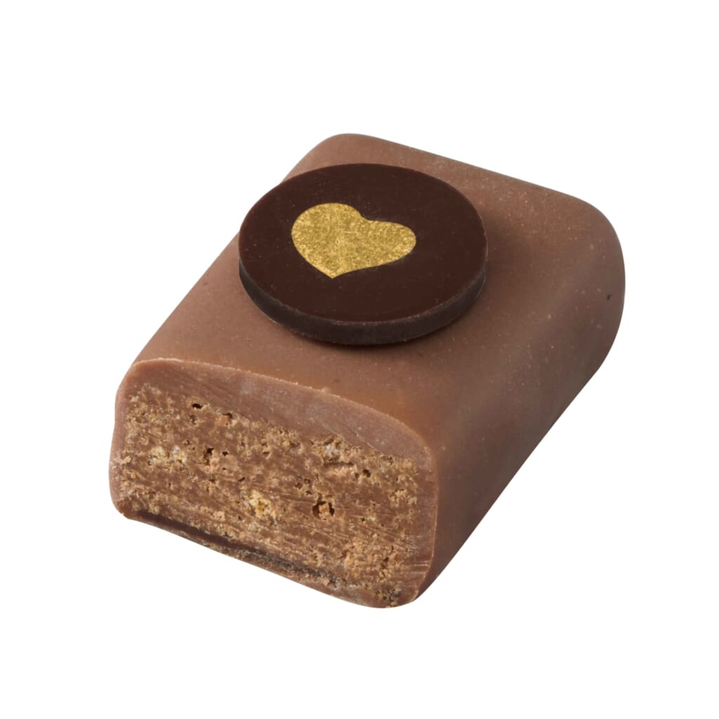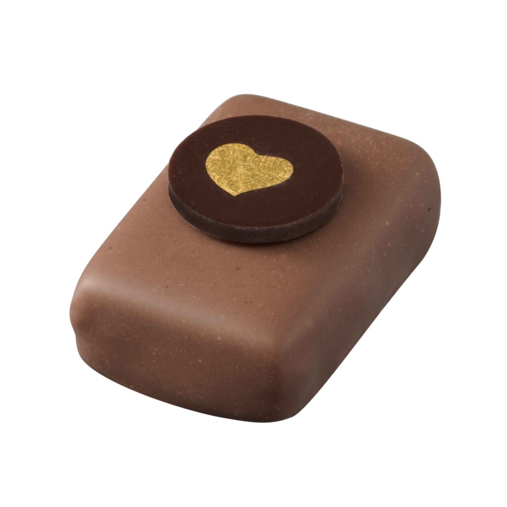 香ばしいスペキュロスプラリネが、繊細な薄いミルクチョコレートで包まれています。金色のハートをトップに描き、ハートのエースを表現。