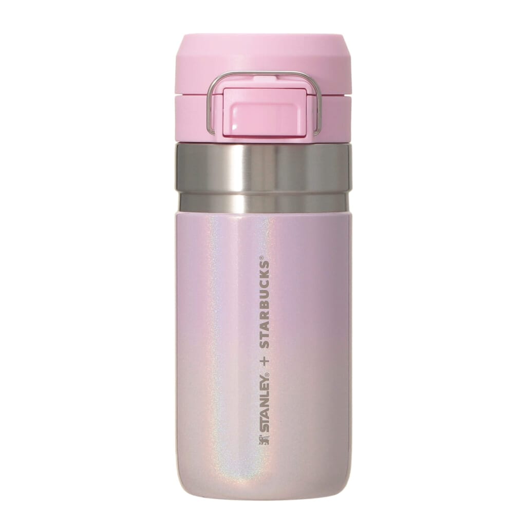 長時間保冷してくれる高い機能性で大人気のSTANLEYのボトルとスターバックスがコラボした人気シリーズに、桜色が登場。桜を思わせる淡いピンクのグラデーションに、繊細な煌めきを添えるパール加工が施されていま