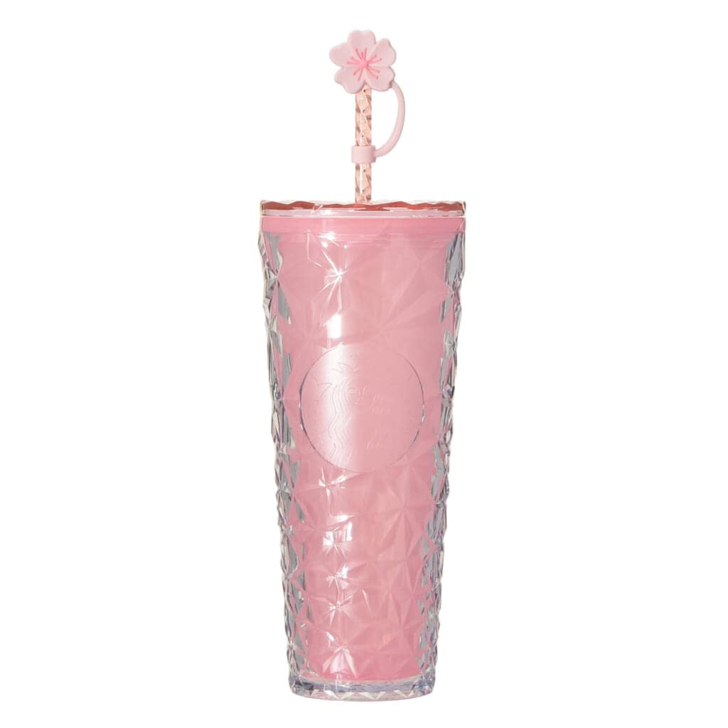 淡いピンクのグラスに桜が映える、リッドとストロー付きグラスタンブラー。グラス上部には「STARBUCKS」のエンボスがさりげなく上品なアクセントになっています。冷たいドリンク専用。