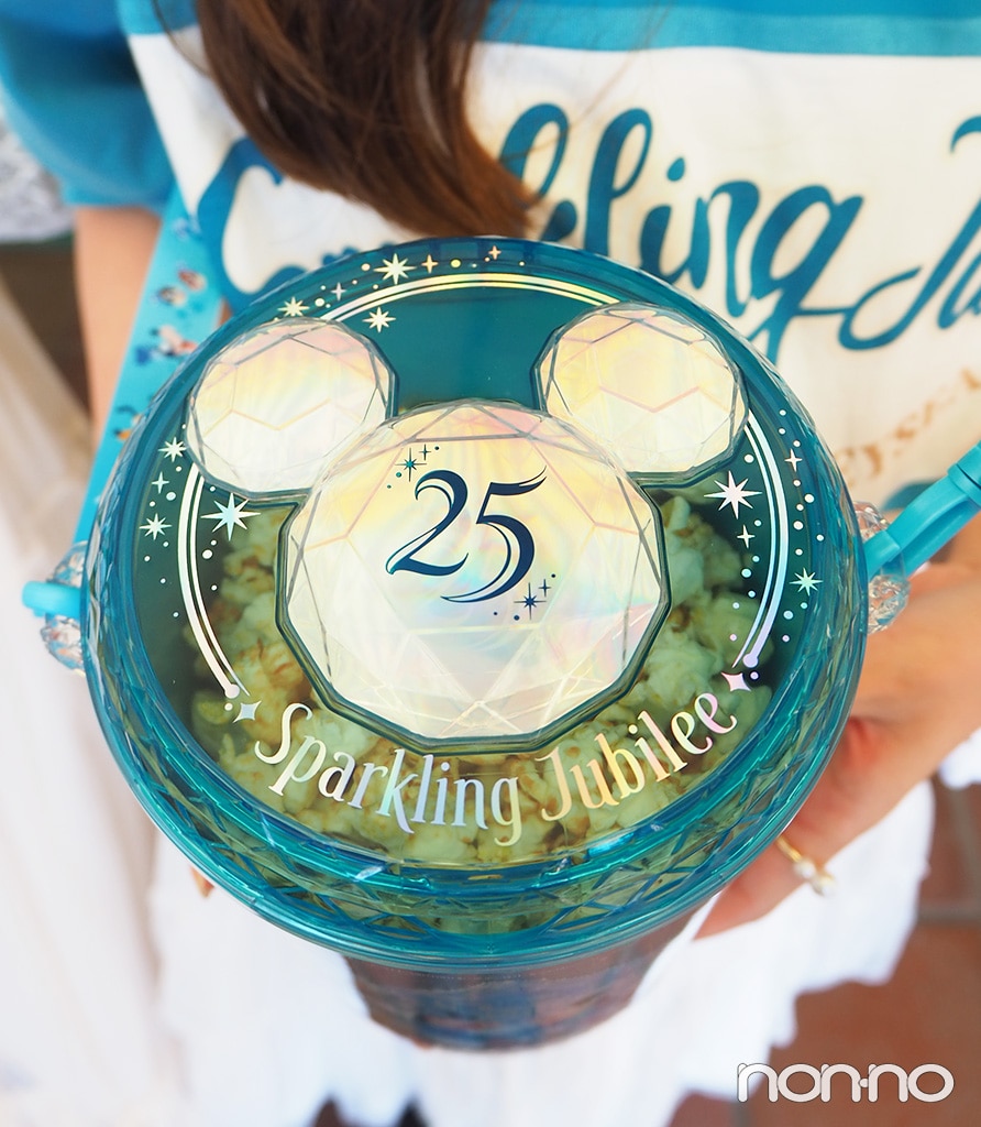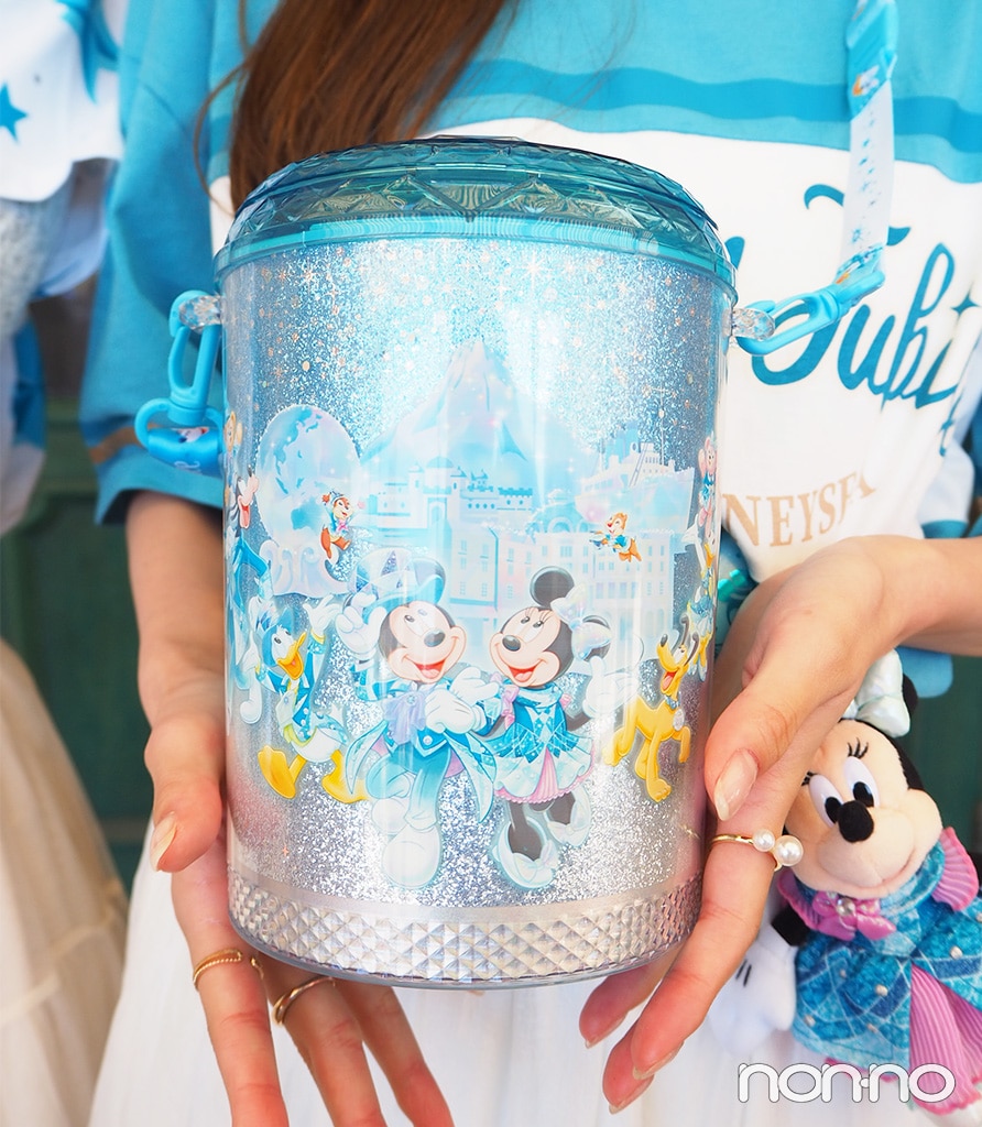 コレクターも多いポップコーンバスケットからチェック! ジュビリーブルーで彩られた、25周年を記念したポップコーンバスケット。