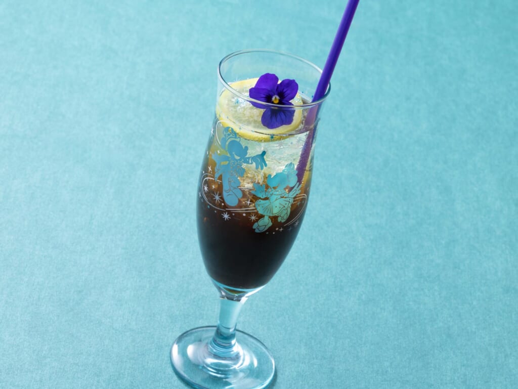 大航海時代のロマンを感じるレストラン「マゼランズ」で提供される特別なドリンク(単品¥1500)。はじけるキャンディ、キラキラ光るラメ、エディブルフラワーで祝祭感をイメージ。