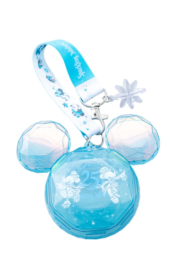 ミッキーマウス型の輝くジュビリーブルーのスナックケースも可愛いすぎる! ストラップつきだからバッグに取り付けられるよ。パーク内では早速、バッグチャームとして活用しているゲストを発見! レストランやフードワゴンなど12店舗で販売。
