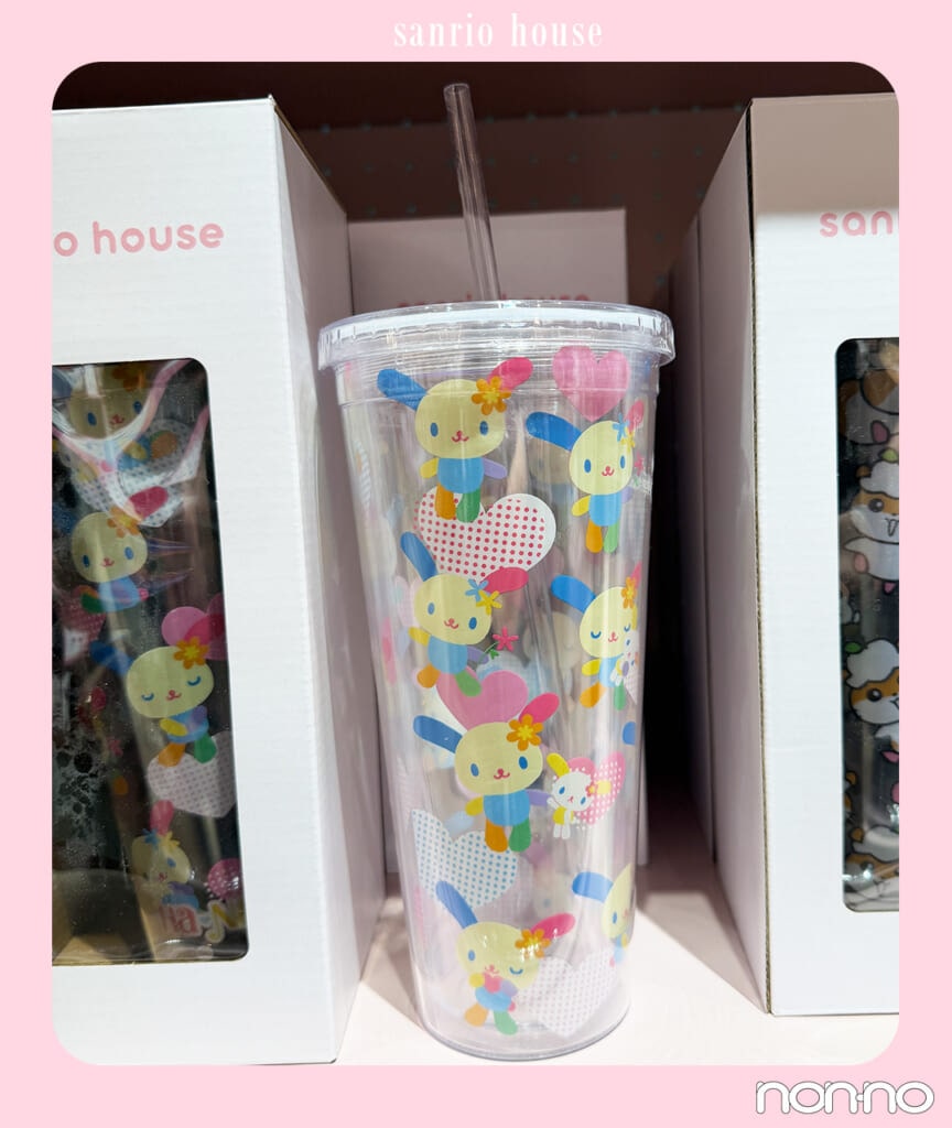 カラフルなウサハナとハートを描いたタンブラーは、ポップな可愛さにあふれる。