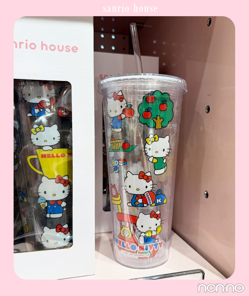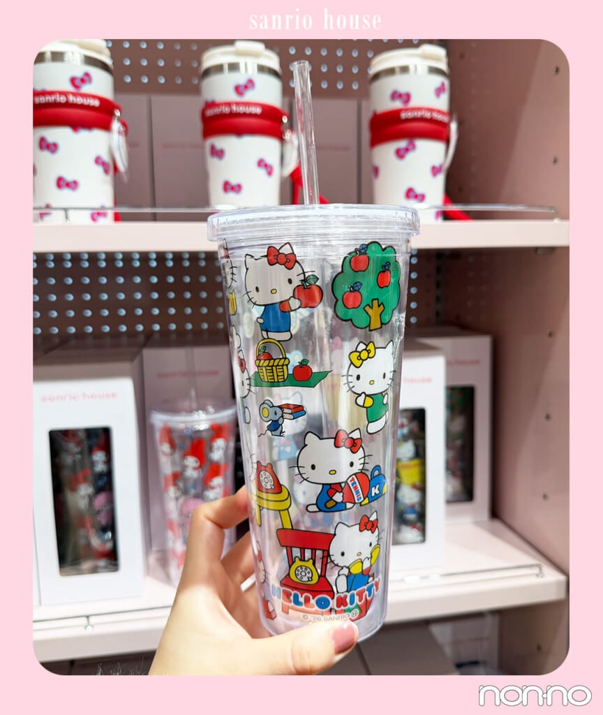 イチオシアイテムとして紹介するのが、ハローキティやマイメロディをはじめ、みんなのたあ坊、マロンクリームなど昔懐かしいキャラクターまで全20種類で展開されるクリアタンブラー。600mlと大容量サイズ、ストローとフタが付いておりデスクワーク中に水分補給したい時にぴったり。¥1980で購入できてデイリーに使えるからコスパも最強。キャラクターは昔の面影を残したタッチで描かれており、レトロなデザインが大人女子の心をぎゅっとつかみます♡