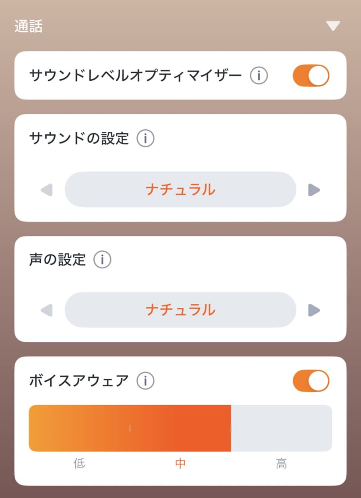 アプリでは、音を自由にカスタマイズできる機能が充実。注目は、リスニングモードを変更できる機能。周囲の音をシャットアウトする「ノイズキャンセリング」、環境音や人の話し声を聞ける「アンビエントウェア」、ヘッドホンを外さずクリアに会話を楽しめる「トークスルー」のモードに切り替えられ、シーンに応じて音声をコントロールできる! また通話中には自分と相手の声のトーンを調整することも可能。