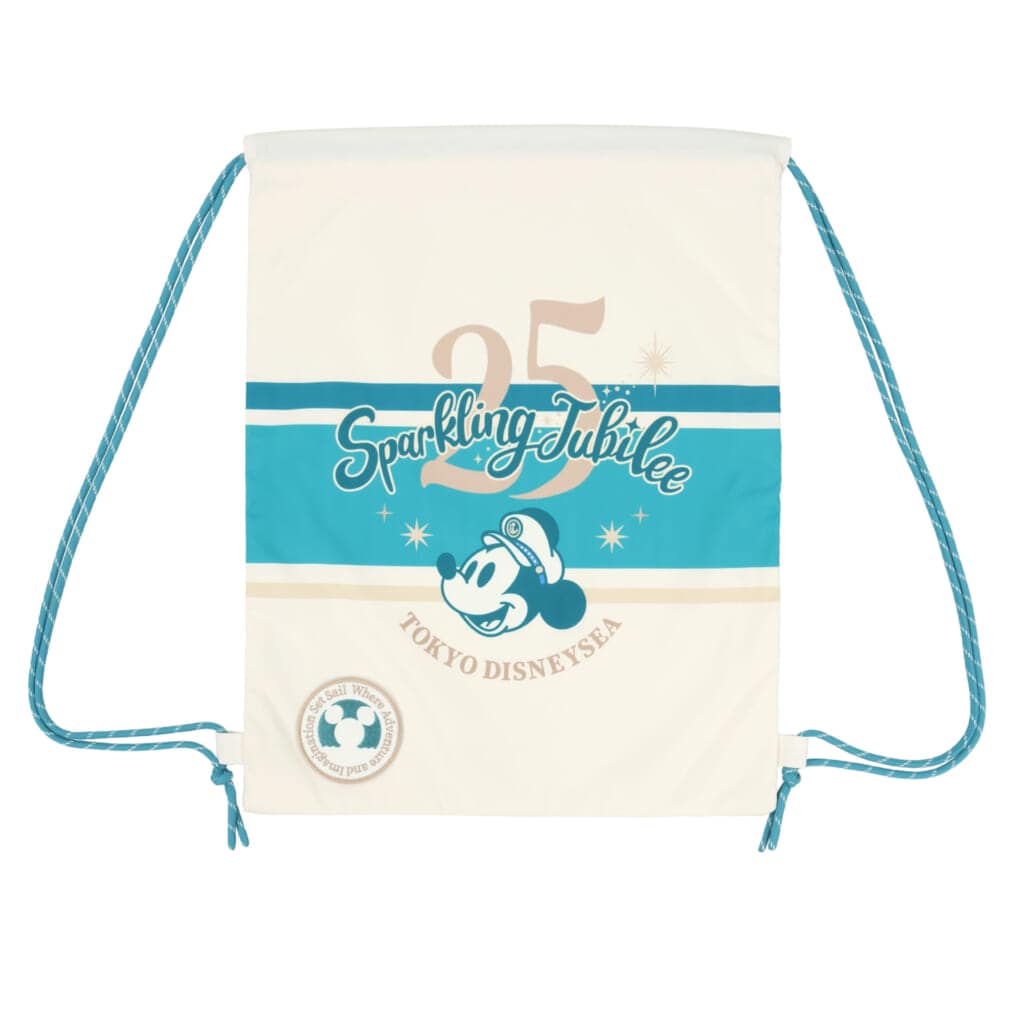 25周年のロゴをワンポイントであしらったTシャツは一見シンプルと見せかけて、後ろ姿はデザイン性たっぷり! バックに東京ディズニーシーのモチーフを大きくあしらい、「Sparkling Jubilee」のロゴをぷっくりとしたブルー箔でプリント。ぶかっとしたビッグなシルエットで楽しめる。