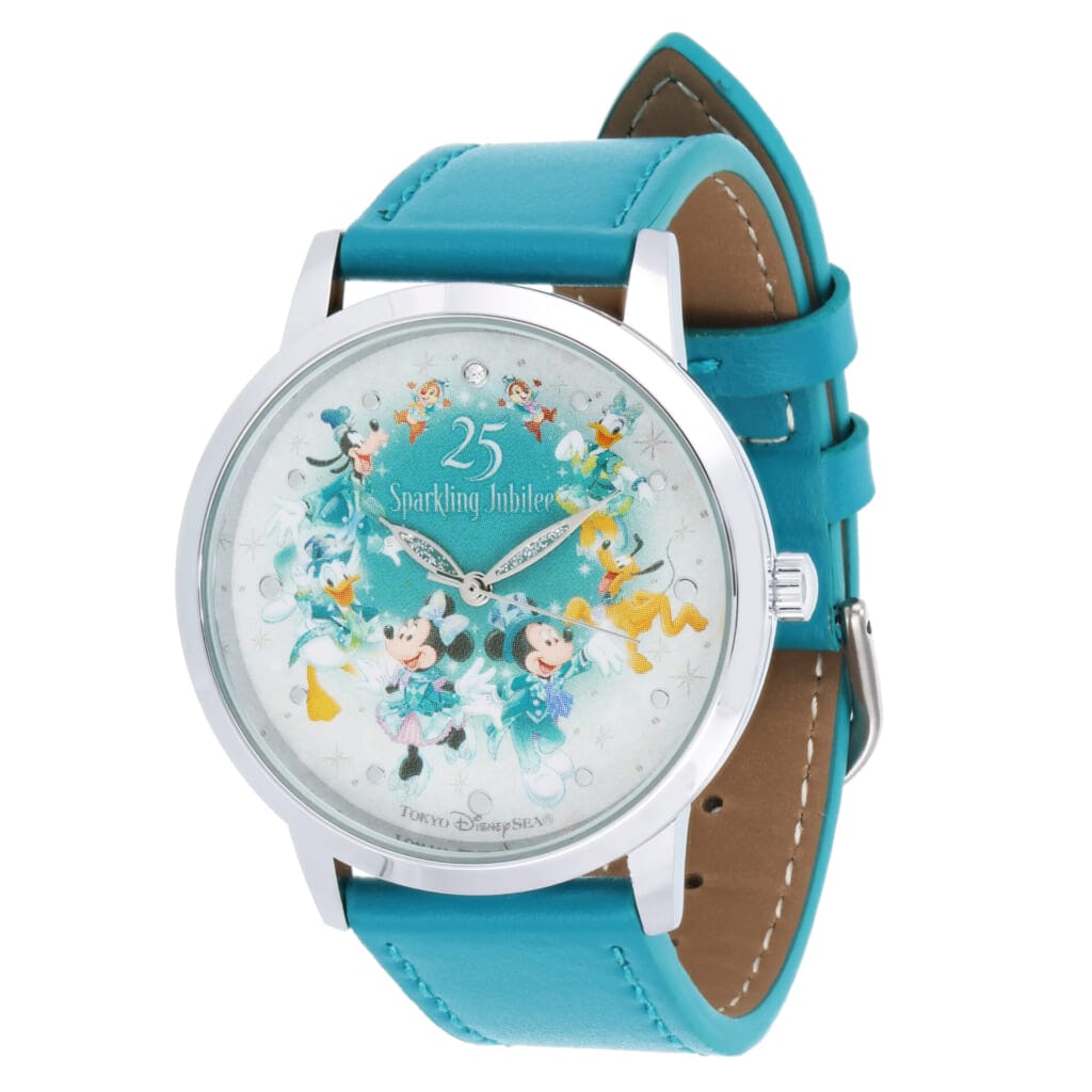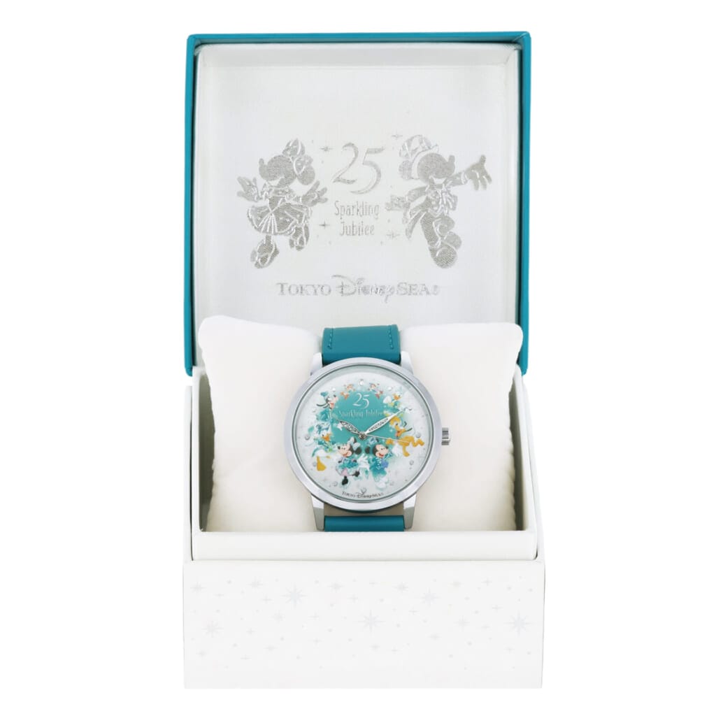 25周年をお祝いするディズニーの仲間たちがデザインされたウォッチ。バンドやボックスのカラーもジュビリーブルーに。