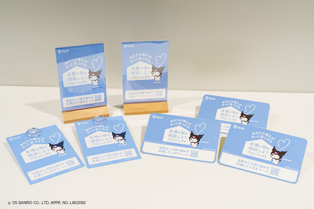 「自分に合った対処法を見つけて、少しでも健やかな生活を送ってほしい」──そんな思いから、ツムラは〜あなたの答えがきっと見つかる〜「生理の悩み相談しようプロジェクト」を立ち上げました。プロジェクトのイメージキャラクターは株式会社サンリオのキャラクター「クロミ」。全国の医療機関にご協力いただき、相談しやすい環境づくりを目指した「クロミ ステッカー」の設置を進めています。