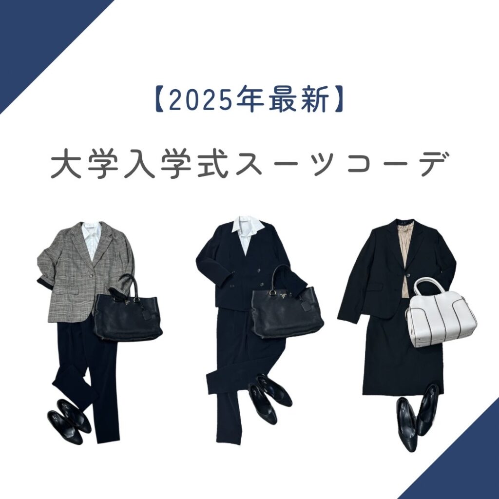 新入生が悩みがちな大学入学式の服装。2026年の現役大学生の経験談を参考にした、大学入学式に女性が着るスーツコーデの正解を解説! 実際に着た先輩の入学式コーデも参考にしてみて。