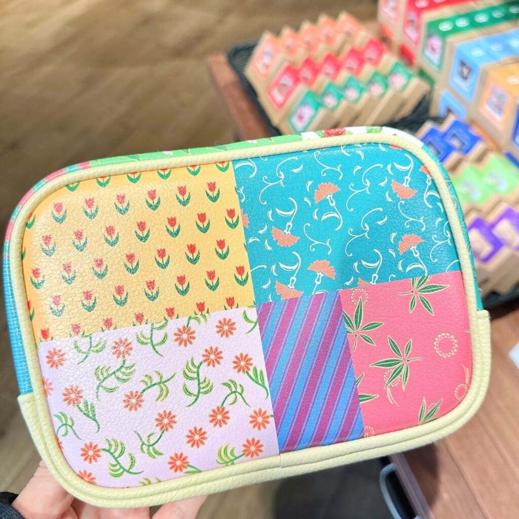 『借りぐらしのアリエッティ』の世界観をモチーフにしたもう一種類のスクエアポーチもすこぶる可愛いのでご紹介します! 主人公・アリエッティのお部屋に使われている壁紙をパッチワーク風にデザイン。ファスナーつきでマチがしっかりあるのでとても使いやすそうです。ぜひ普段づかいのコスメポーチに。