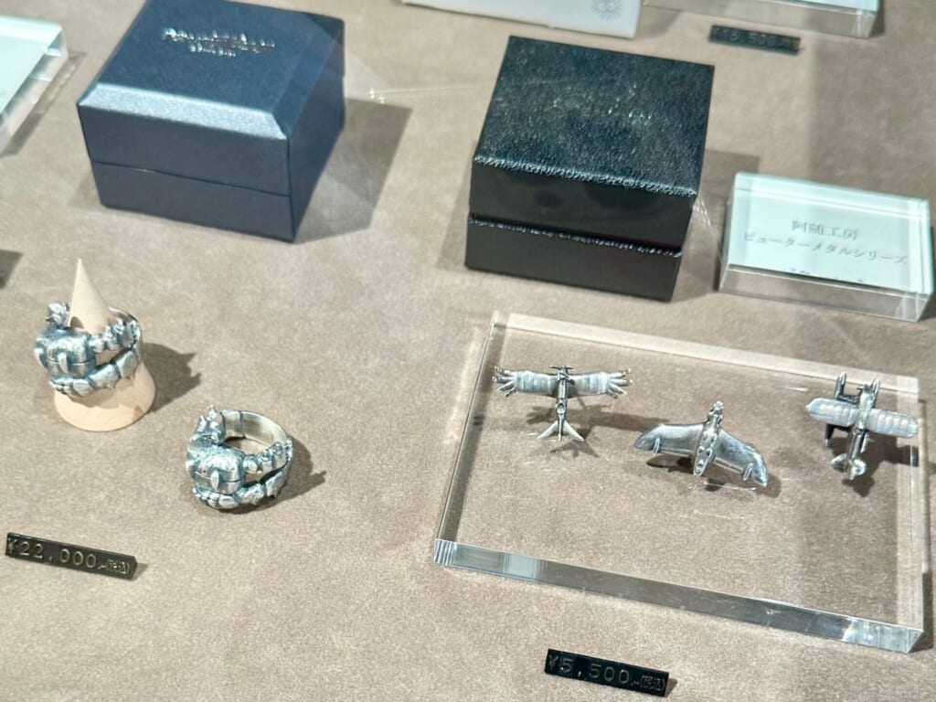 東京・谷中で阿随金属工房を営む阿随秀昨さんが手がける、ピューターメタルシリーズのアクセサリーは、スタジオジブリ作品に欠かせない飛行機やロボットをモチーフに作られています。緻密でリアルな造形と重厚感あふれるたたずまいは、ファンならずともひとめ惚れ間違いなし!