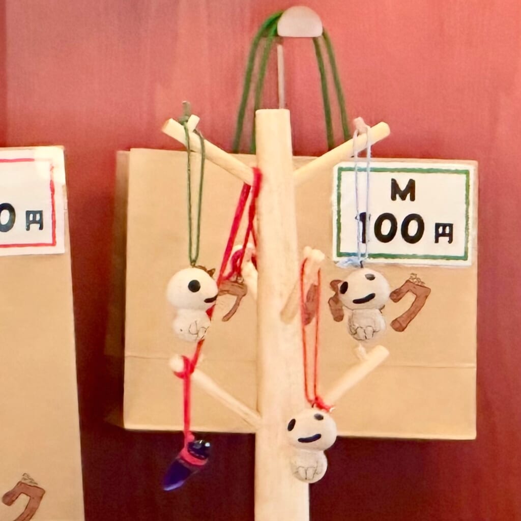 縁起物の最高峰ともいえる大きな熊手や矢飾りまで販売されています! 熊手には、大きな2匹の鯛の上にドーンと鎮座する「どんどこ堂」の主・大トトロを中心に、大入り袋や小判がザクザクとあしらわれている、いかにもおめでたいデザイン。矢飾りは、大トトロを描いた絵馬や金・銀の鈴があしらわれている破魔矢です。どちらもお部屋に飾れば運気アップ間違いなし!?