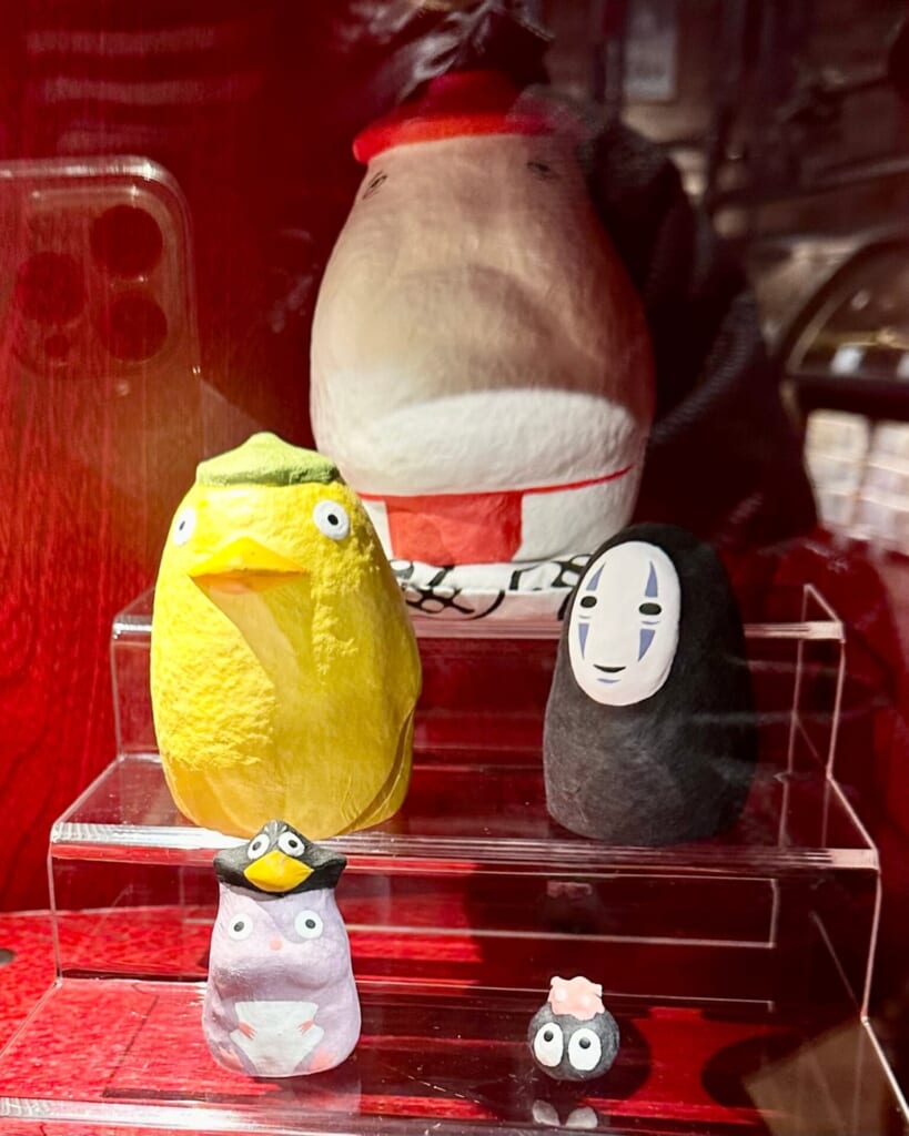 左からカオナシ・シシガミ様・トトロ・オオトリさま・仮面をつけたサン。どれも持っているだけでご利益にあやかれそうなありがたさ! スタッフに聞いたところ、売れ筋No.1はシシガミ様(左から2番目)、No.2はカオナシ(いちばん左)だそう。