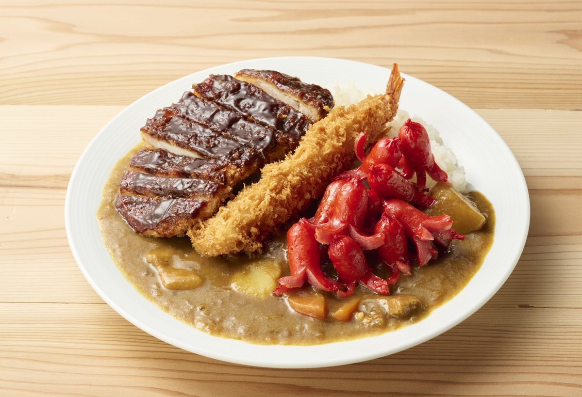 愛知県ご当地グルメとして人気の味噌カツのほか、タコさんスタイルにカットした赤ウインナー、エビフライがのった全部のせ! トシちゃんスペシャルカレー(¥2500)のほか、【元祖】 味噌カツカレー!(¥1500)、【名物】山盛り赤ウインナーカレー!(¥1500)が味わえます。具だくさんのカレーは辛すぎず、お子さまでも楽しめるように工夫されているのだとか。