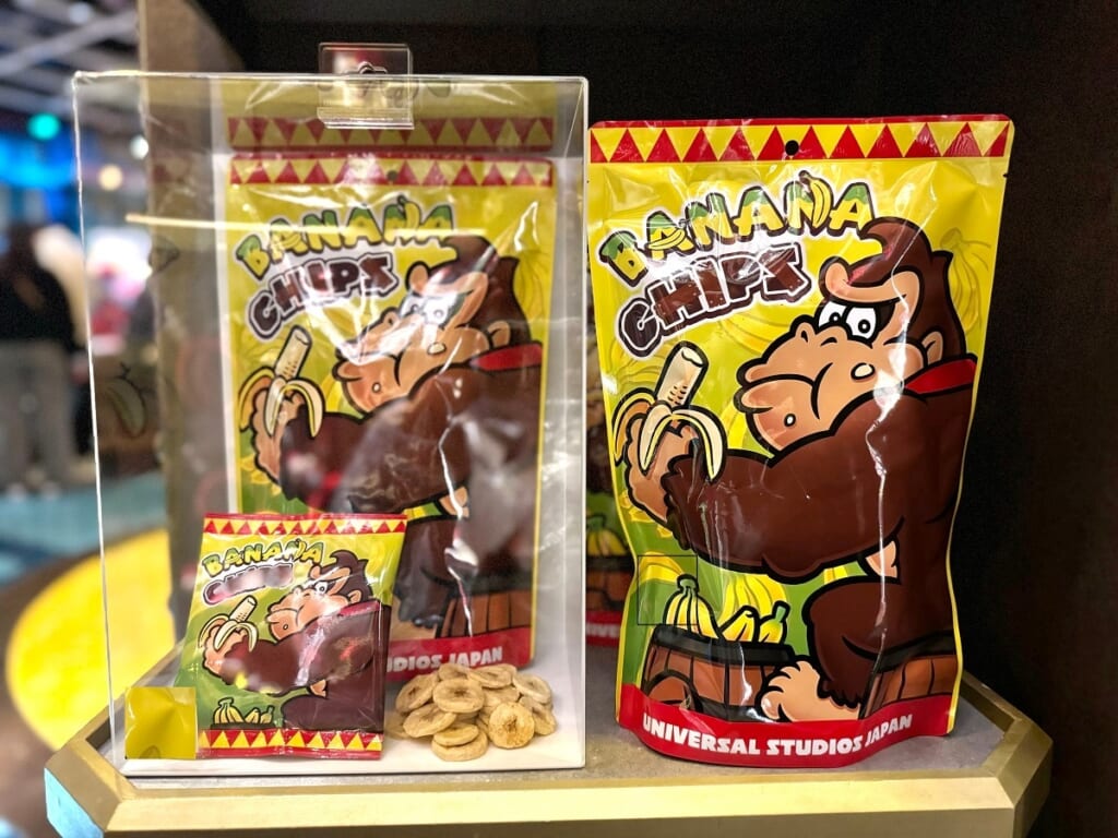 バナナを食べるドンキーコングが描かれたパッケージの中には、小分けされたバナナチップスがイン。
