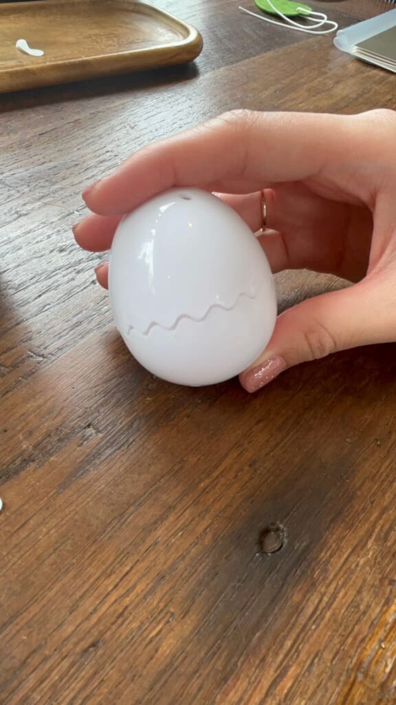 次に頭にはっぱをのっけていきます。のせる向きを決めたらボンドをつけてそっと頭にのせます。