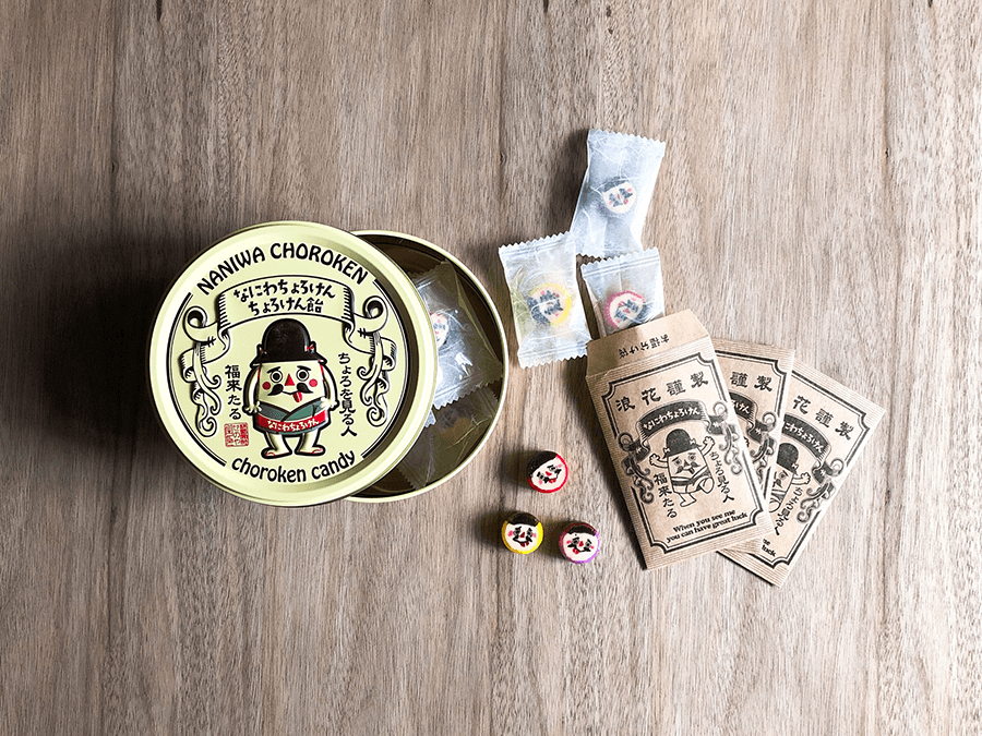 大阪発のお菓子「なにわちょろけん」シリーズのあめちゃんが可愛い! あめ職人が丁寧に、真心込めて作った手作りで、ひとつひとつ表情が異なるのがポイント。フレーバーは、レモン、ぶどう、いちごの3種類です。缶の中にはあめのほかに、“お福分け袋”が入っています。缶のデザインもキャッチーで、リユースできますね♪