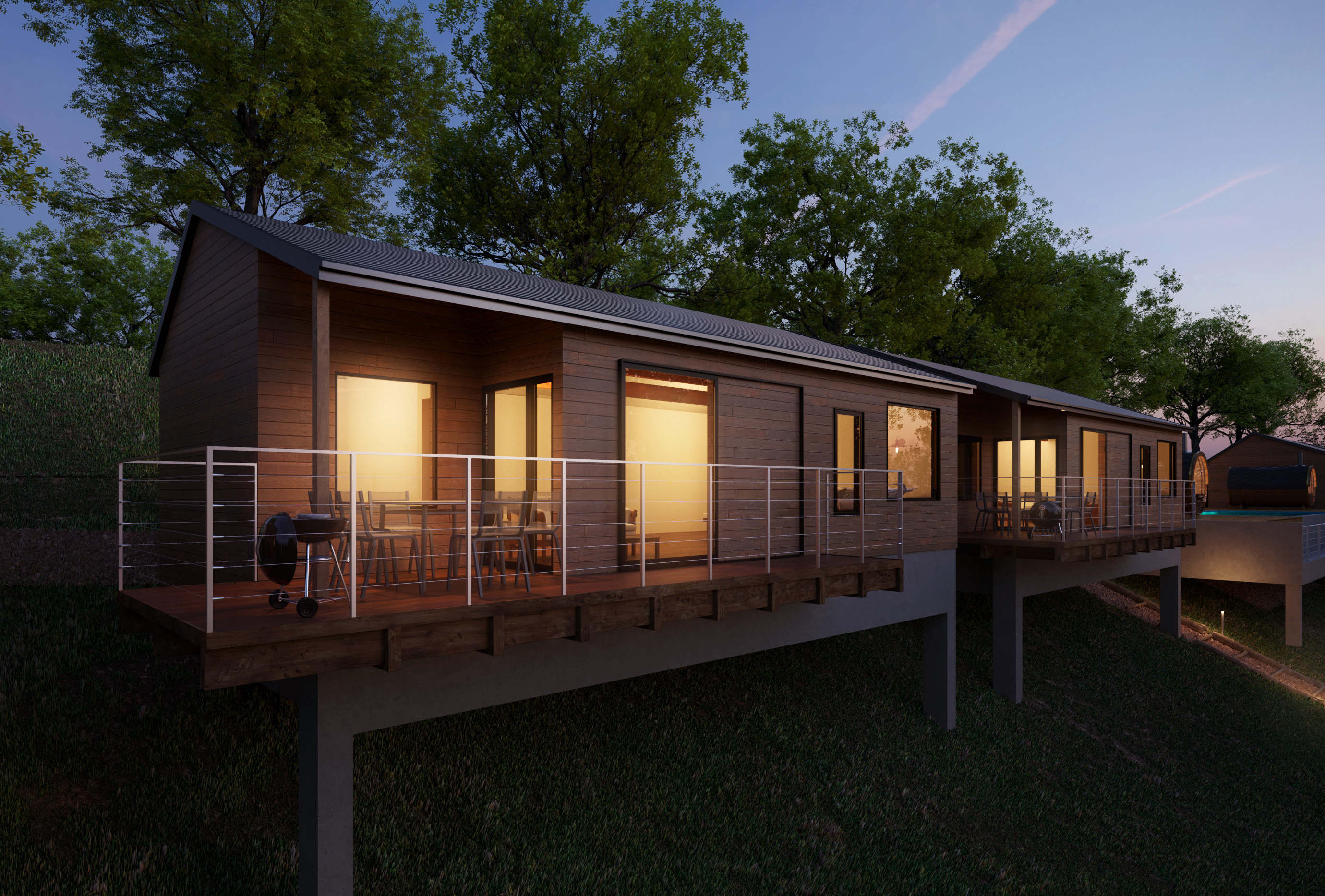 秩父のまちを一望できる本施設は、全6棟。そのうちの2棟のコテージは、愛犬とともに宿泊することが可能です。また、敷地内には、サウナやプール、ドッグランを併設しています。