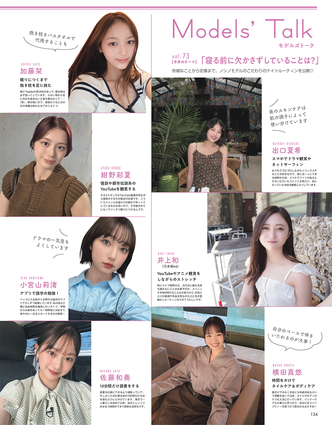 Models’ Talk「寝る前に欠かさずしていることは?」