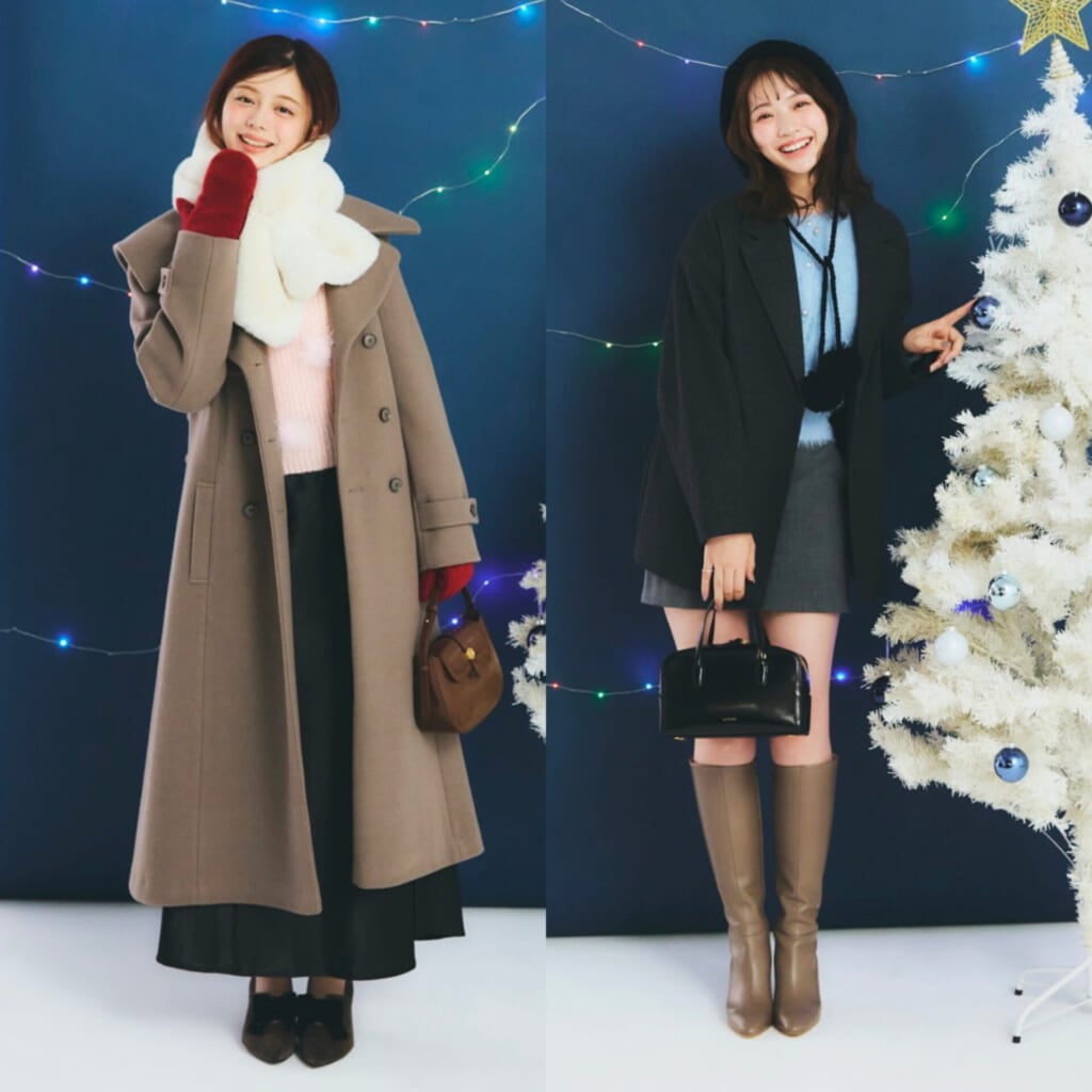 イルミネーションを見に行く夜は、輝きに負けないきらめくニットを仕込んで♡【フェミニン派 紺野彩夏&カジュアル派 村上なずな防寒冬イベコーデ vol.1】