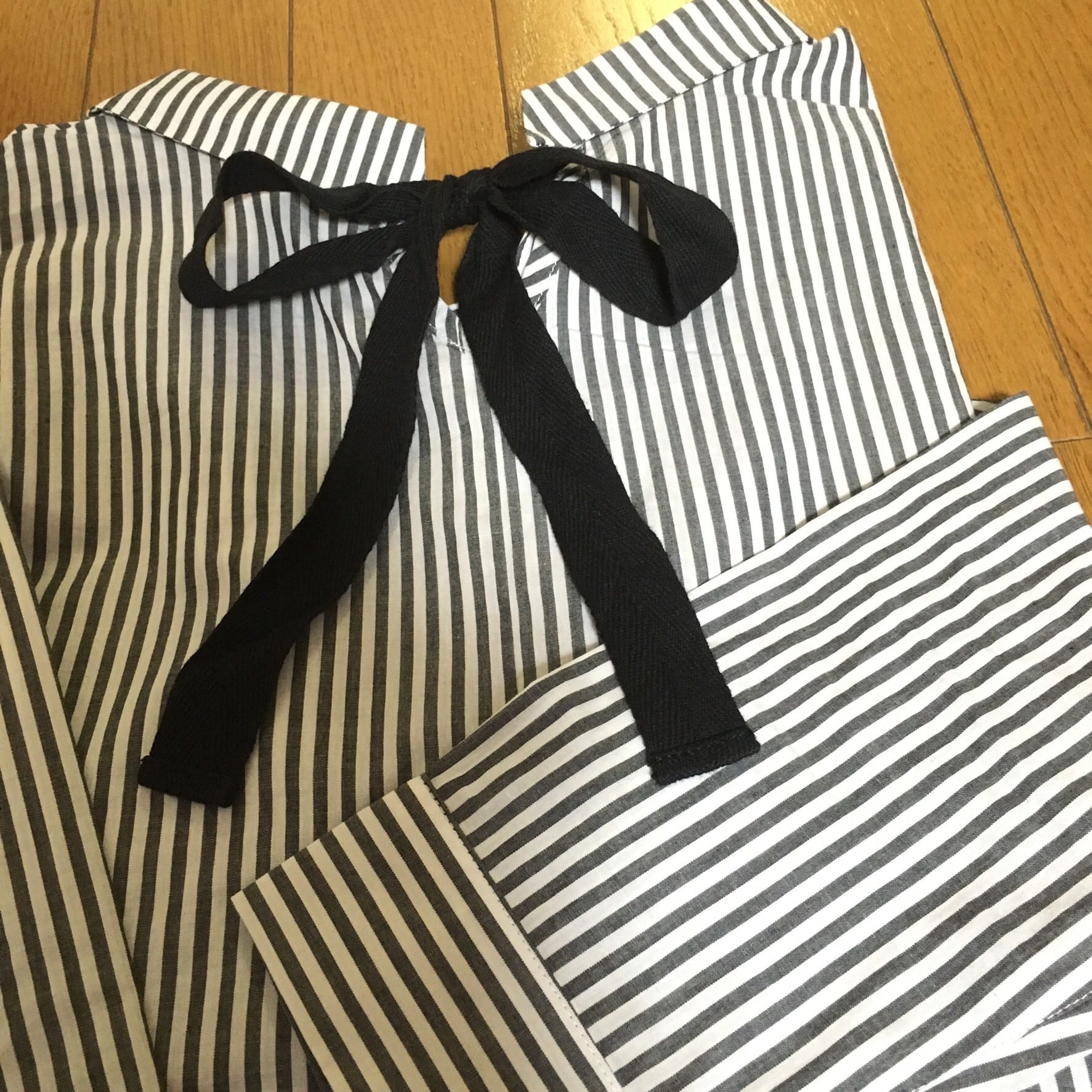 流行りの白と迷ったけど、最近白ブラウスも買ったので、今回はグレーのストライプにしました‼️
