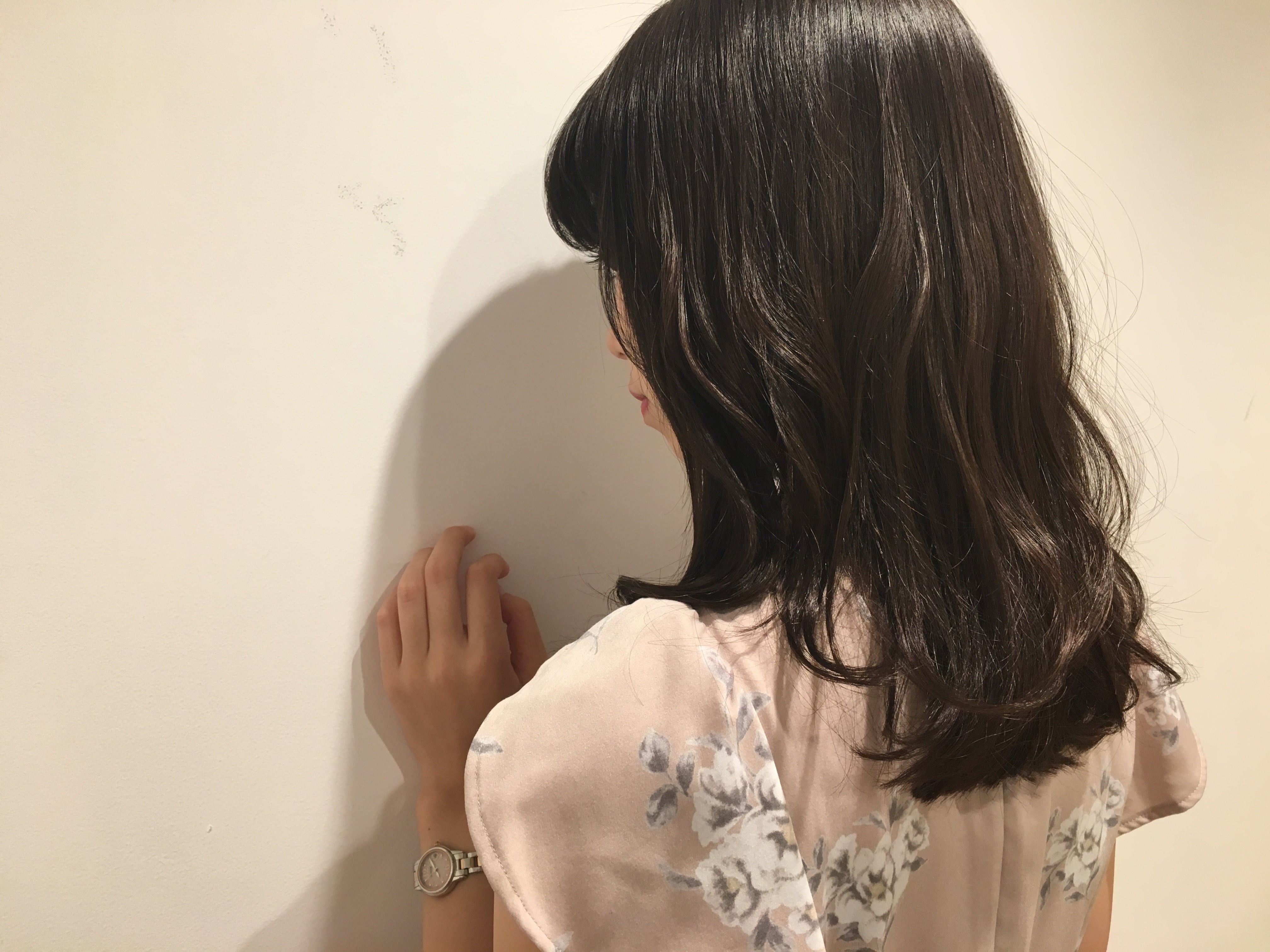 そして、今回、麻里さんに染めていただいて、黒髪に見える紫よりのアッシュグレーにしてもらいました♪( ´▽`)