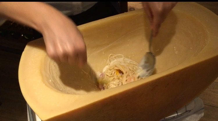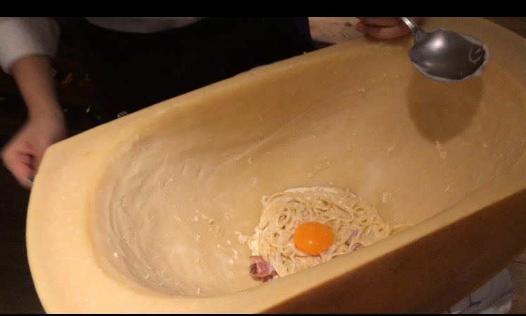 チーズの中で、パスタや卵、粉チーズを混ぜてくれるんです✨✨✨