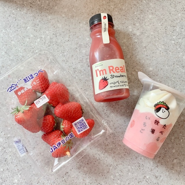 アイスの上に、韓国で購入した【I’m Real】とイチゴを乗せるだけ? 【I’m Real】の代わりにイチゴジャムでも良さそう??