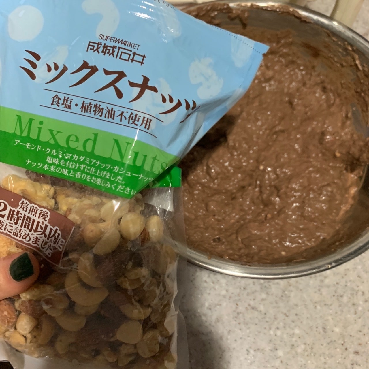 6お好みでナッツを入れてヘラでざっくりと混ぜる