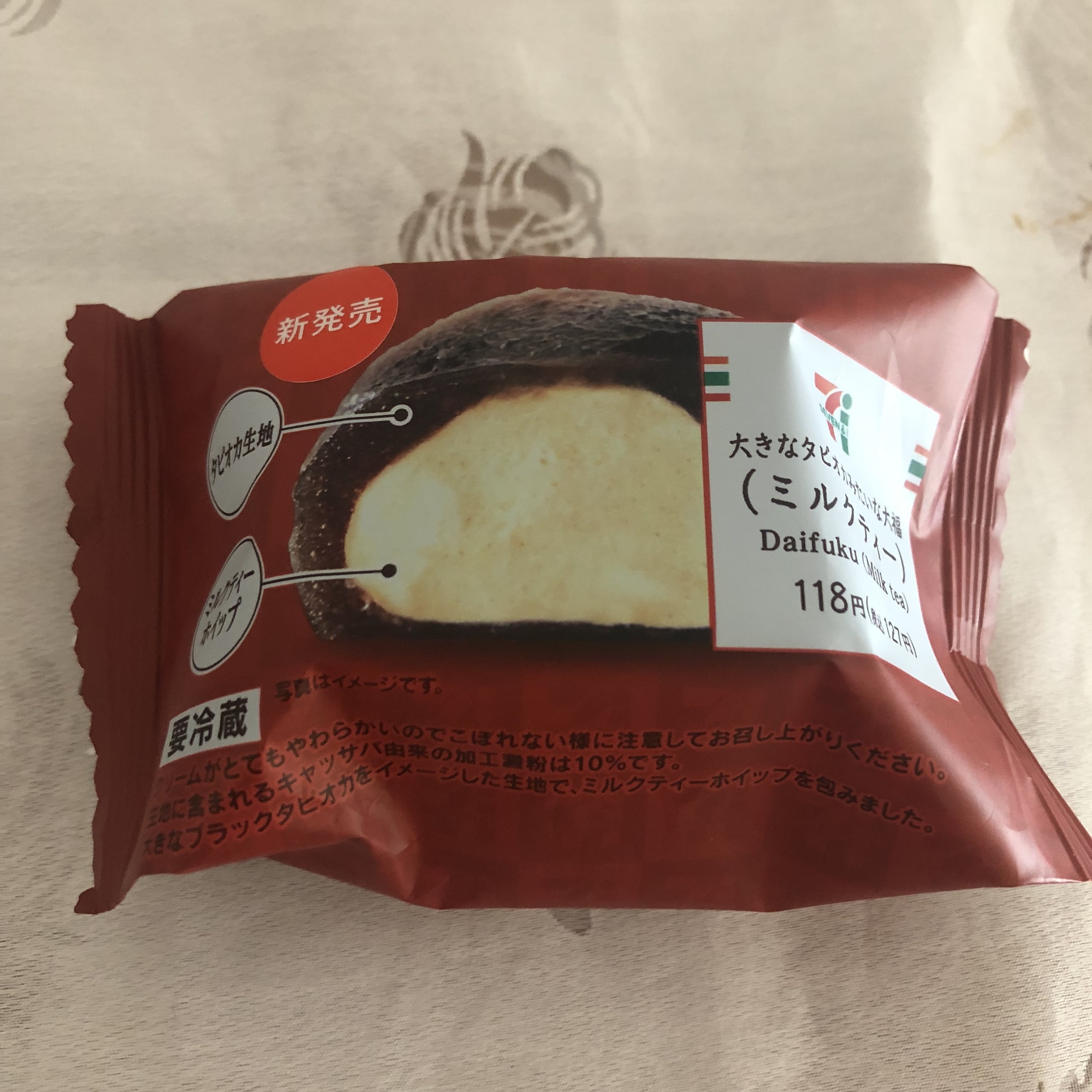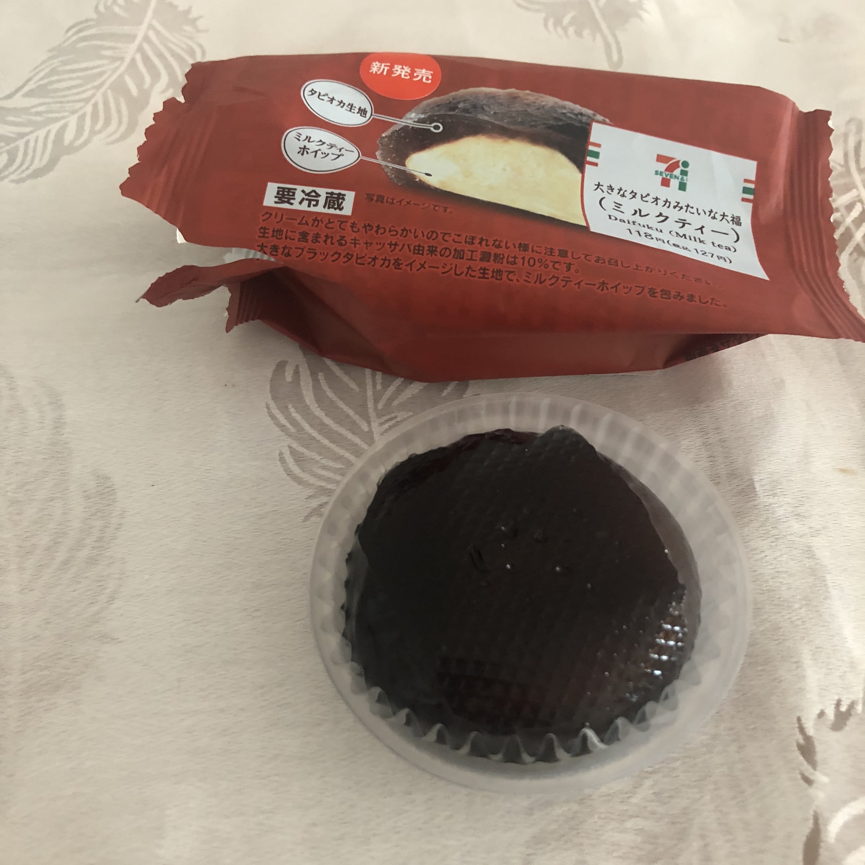 まず、タピオカの大福!?という天才的な発想に感動しました。想像以上にプルプル、モチモチの生地の中にミルクティー味のクリームが入っていて、幸せです。切って中の写真を取ろうとしましたが、プルプルすぎて綺麗に切れませんでした。