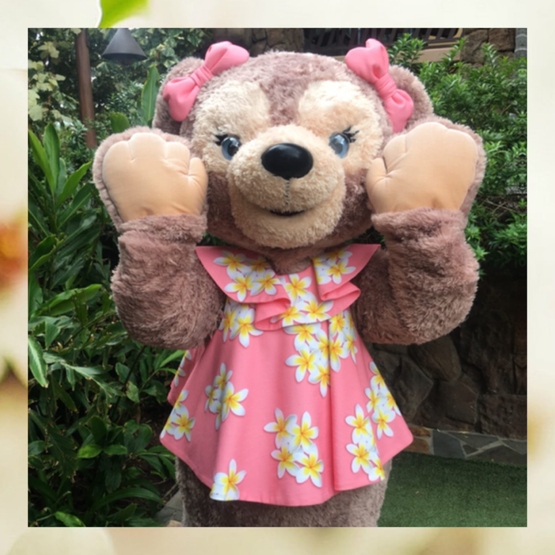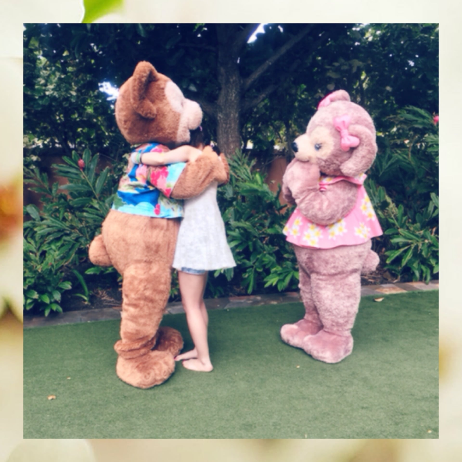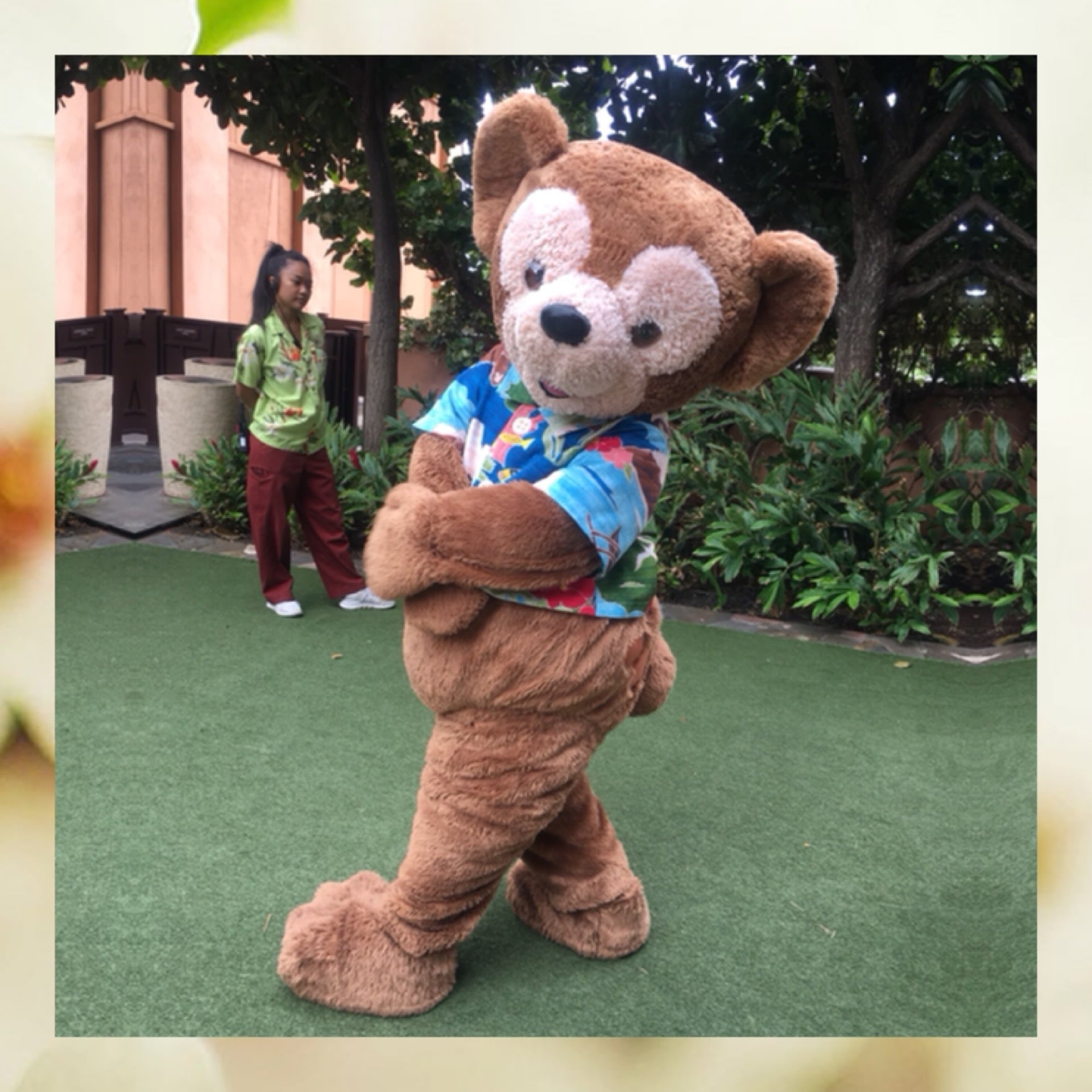 いちばん嬉しかったのは!! フラ体験が終わったあと、リゾート内でダッフィーとシェリーメイに会えたことでした!!!