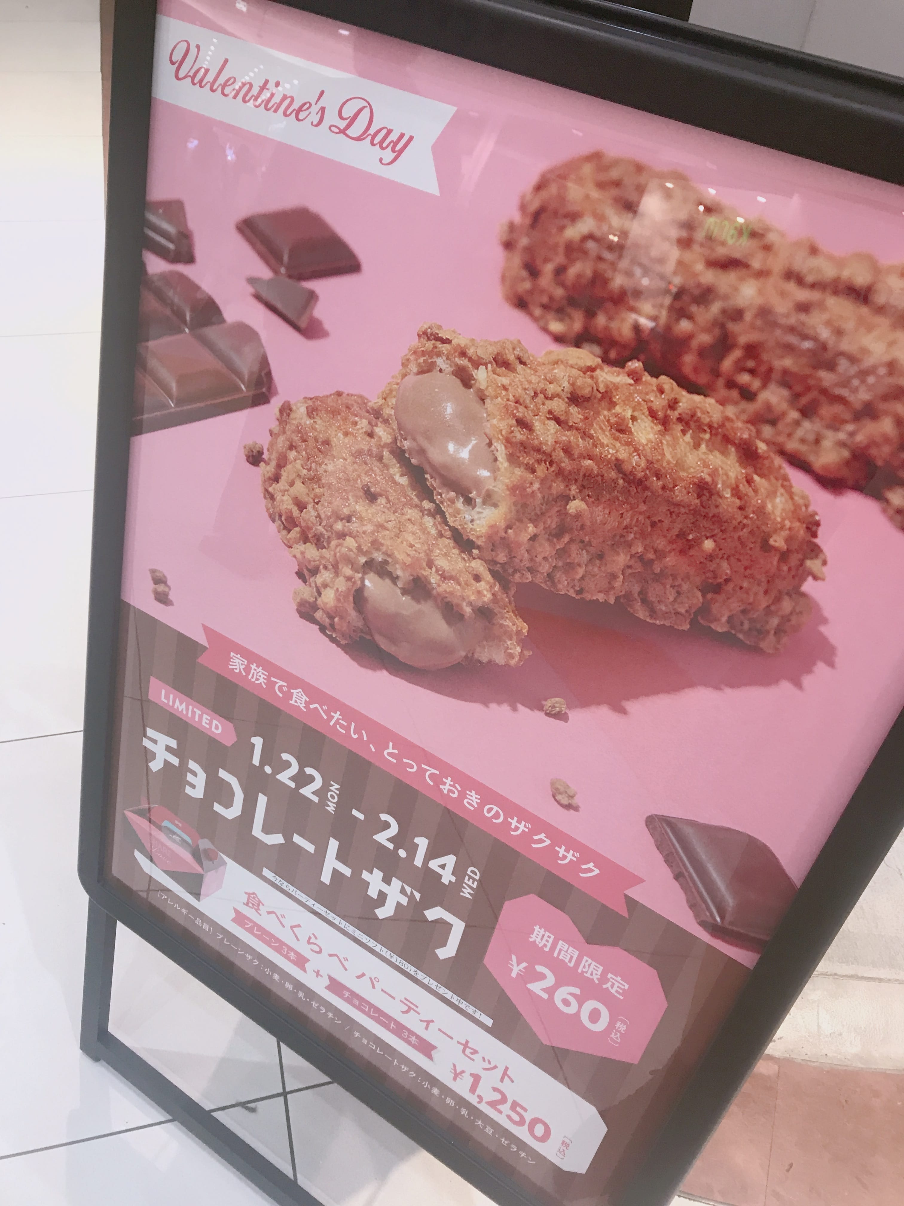大人気のお店、ザクザクでバレンタイン限定のチョコレートザクを見つけたのでご紹介したいと思います!