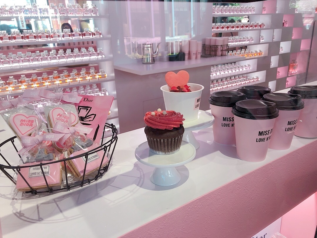 カフェのメニューには ピンクラテやカップケーキ、アイシングクッキーなどがあるみたい?
