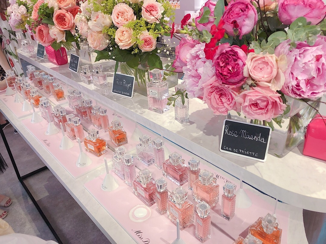 ミスディオールの香水が一面に並んでいたり…