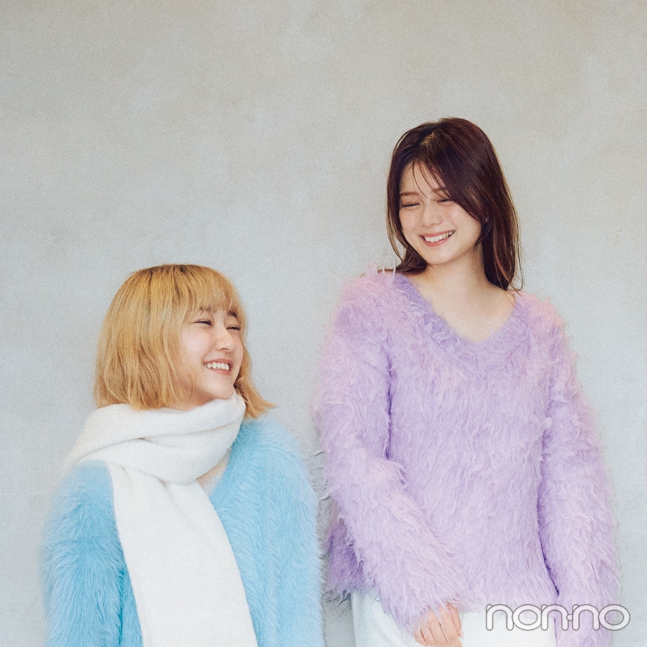 【好きな人と会う日のニット】あざと可愛くなれる淡色シャギーカーデ