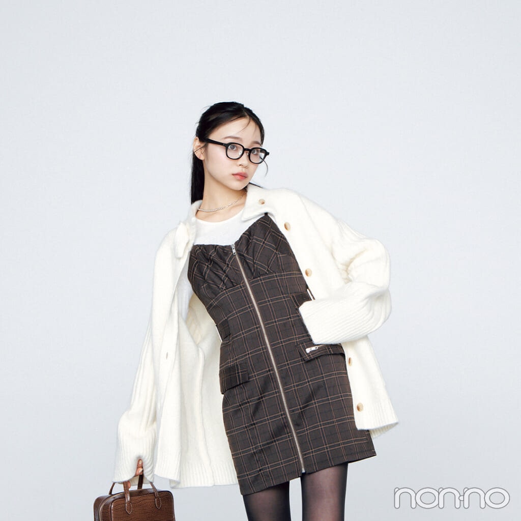 ミニワンピ×ふわふわニットで冬の最旬レイヤード【大学生の毎日コーデ】